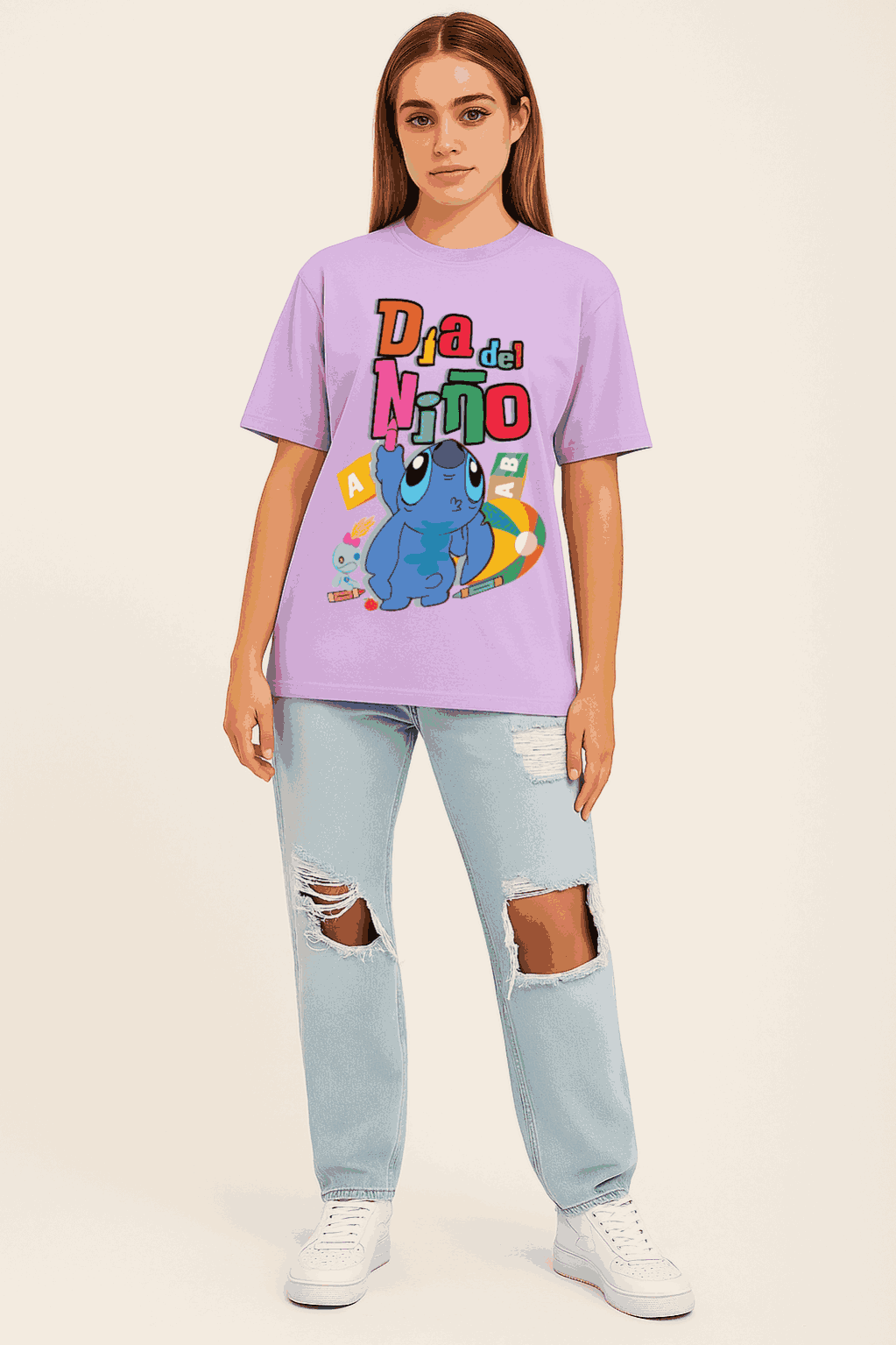 • Fun lavender t-shirt celebrating Día del Niño (Children’s Day).