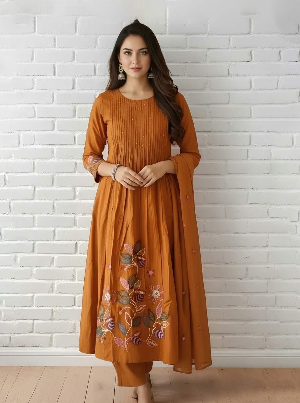 Elegant Mustard Embroidered Kurta Set with Dupatta for Women
