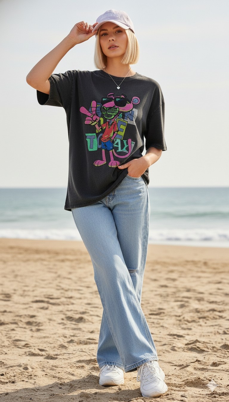 - Combines the iconic cool of the Pink Panther with a sunny, laid-back aesthetic, appealing to fans of vintage cartoons and bold fashion.