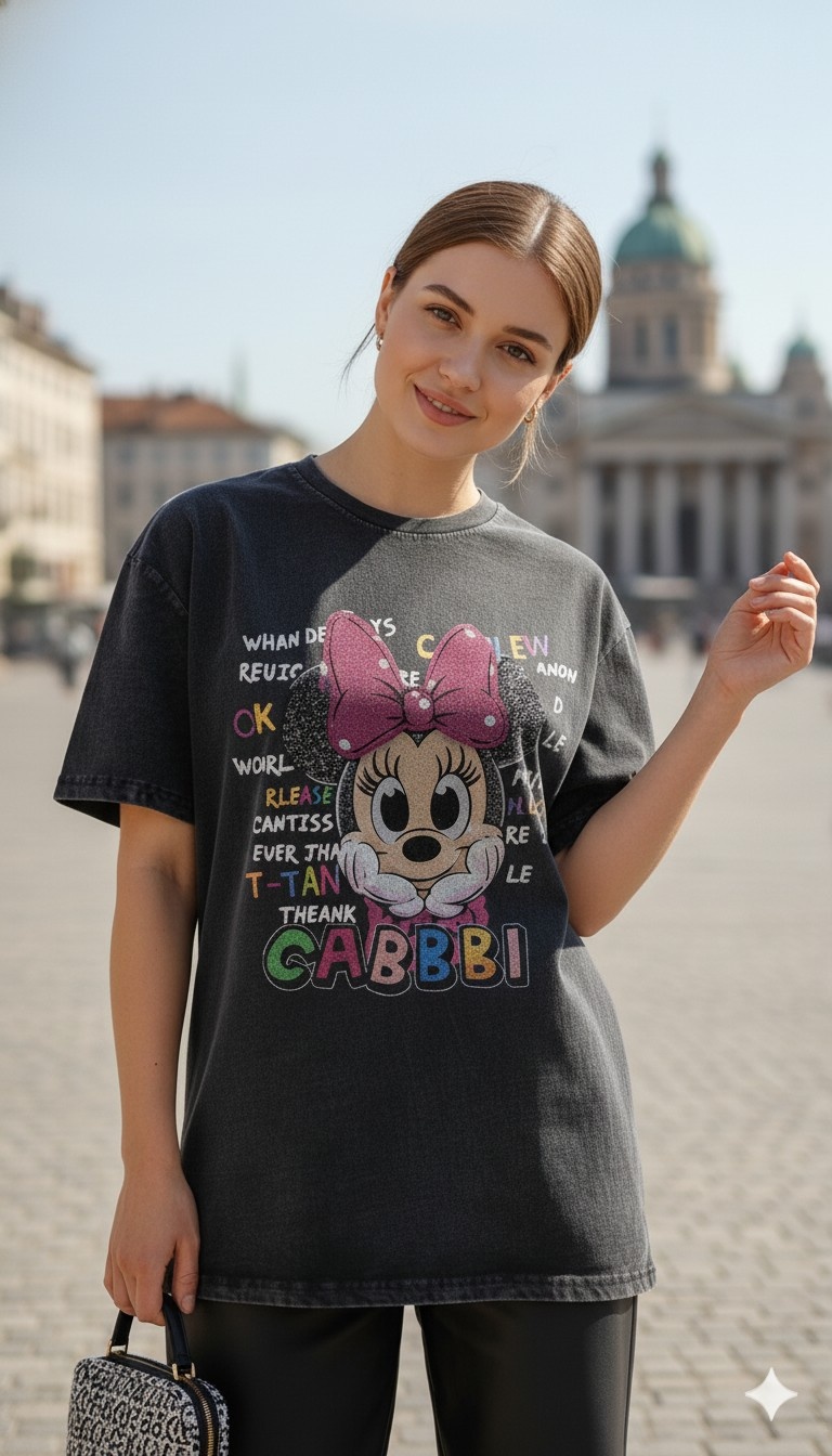 Gabbi Minnie Mouse Graffiti Oversized Acid Wash T-Shirt - 240 GSM Premium Cotton