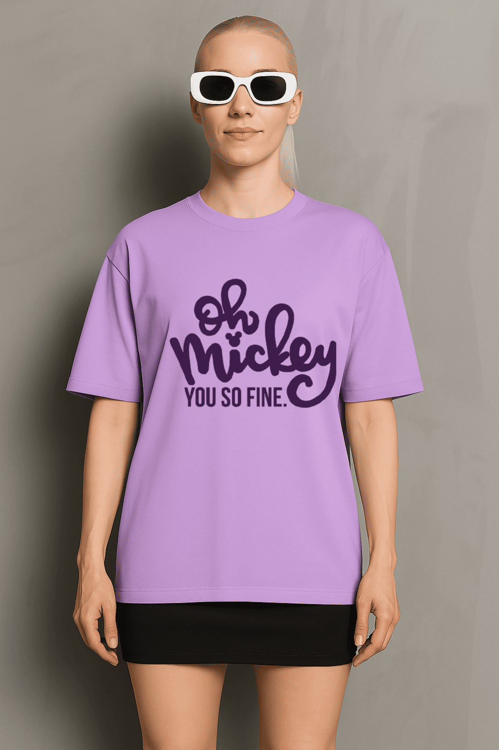 Lavender oversized t-shirt with a bold, urban twist on a classic cartoon icon.