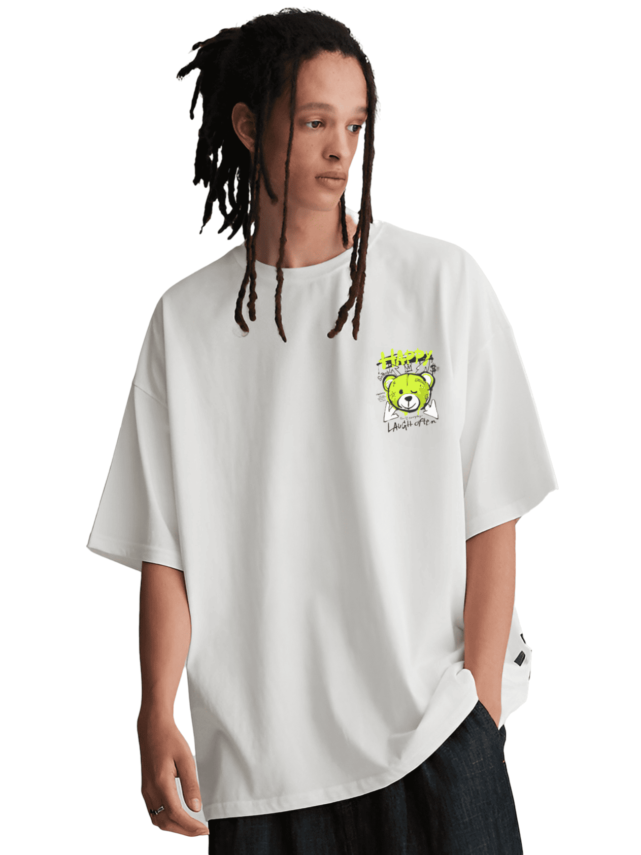 Happy Teddy Graphic Oversized T-Shirt – Positive Vibes Edition