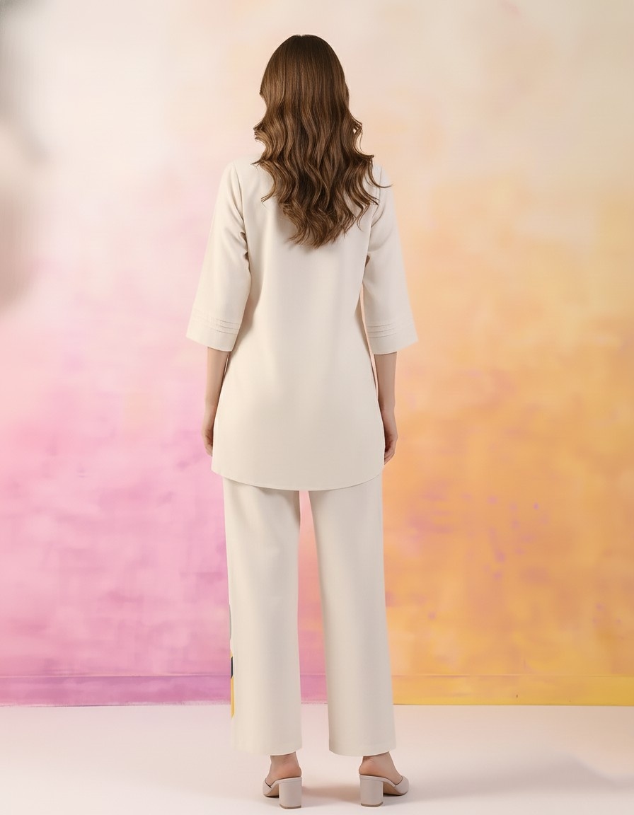 Elegant ivory coord set designed with a modern minimal aesthetic.