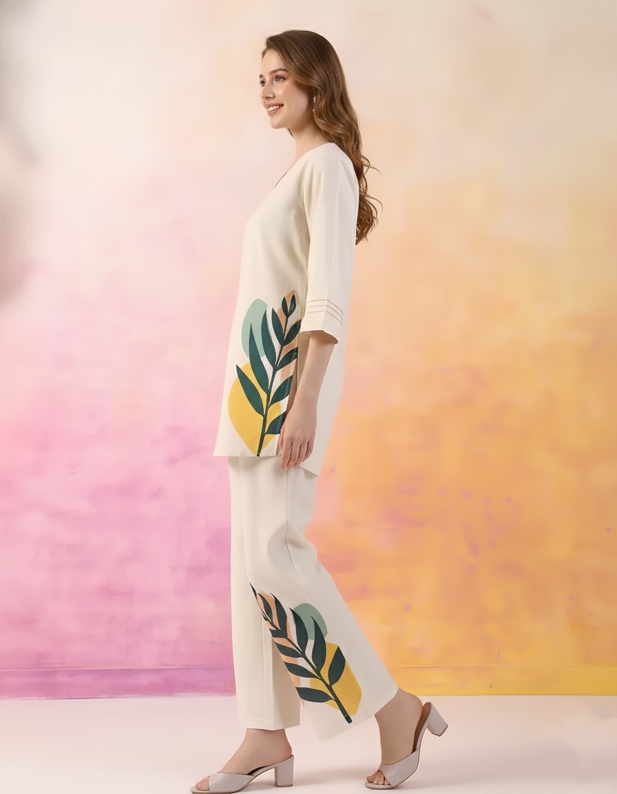 Ivory Leaf Print Coord Set