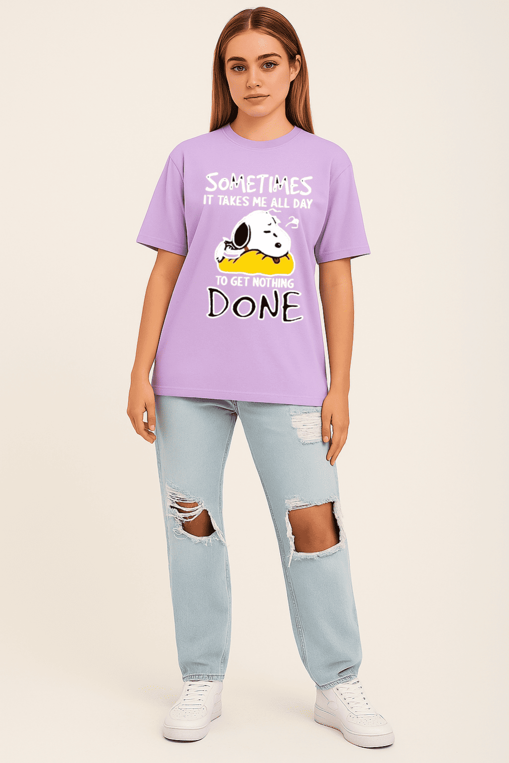 This oversized lavender Snoopy tee made from 100% premium cotton brings the perfect lazy-day energy. With a funny quote and a laid-back vibe, it’s a must-have for comfort lovers.