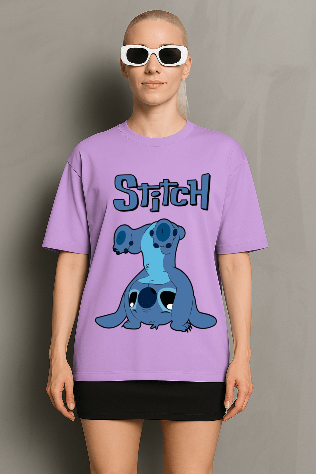 Show off your fun side with this lavender oversized tee featuring Stitch in a playful handstand pose. Made with premium 240 GSM French terry cotton for all-day comfort and style.