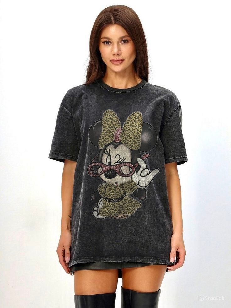 - Sassy Leopard-Print Minnie Graphic: Baby Minnie channels pure attitude with a leopard-print bow, matching dress, glittery heart-shaped sunglasses, and a peace-sign gesture — a fierce fusion of Disney cuteness and wild rockstar energy.