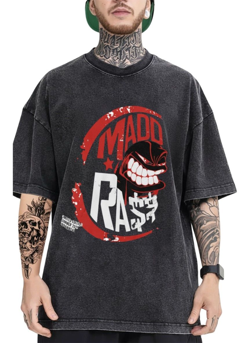 - Features a bold graphic with a fierce rasta-inspired face and "Madd Rasta" text in red and white, surrounded by a distressed circular design, exuding a vibrant, rebellious energy.