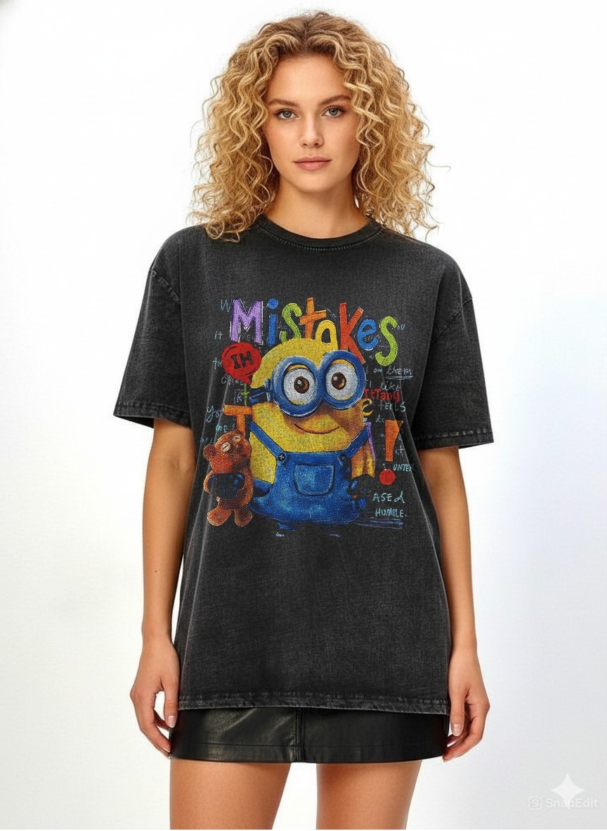 - Playful Minion Graphic with Motivational Chaos: Showcases a cheerful Minion hugging his teddy bear, surrounded by colorful handwritten-style text like "Mistakes," "Try," "Fail," "Stay Humble," and doodles — a fun, uplifting tribute to learning through goof-ups.