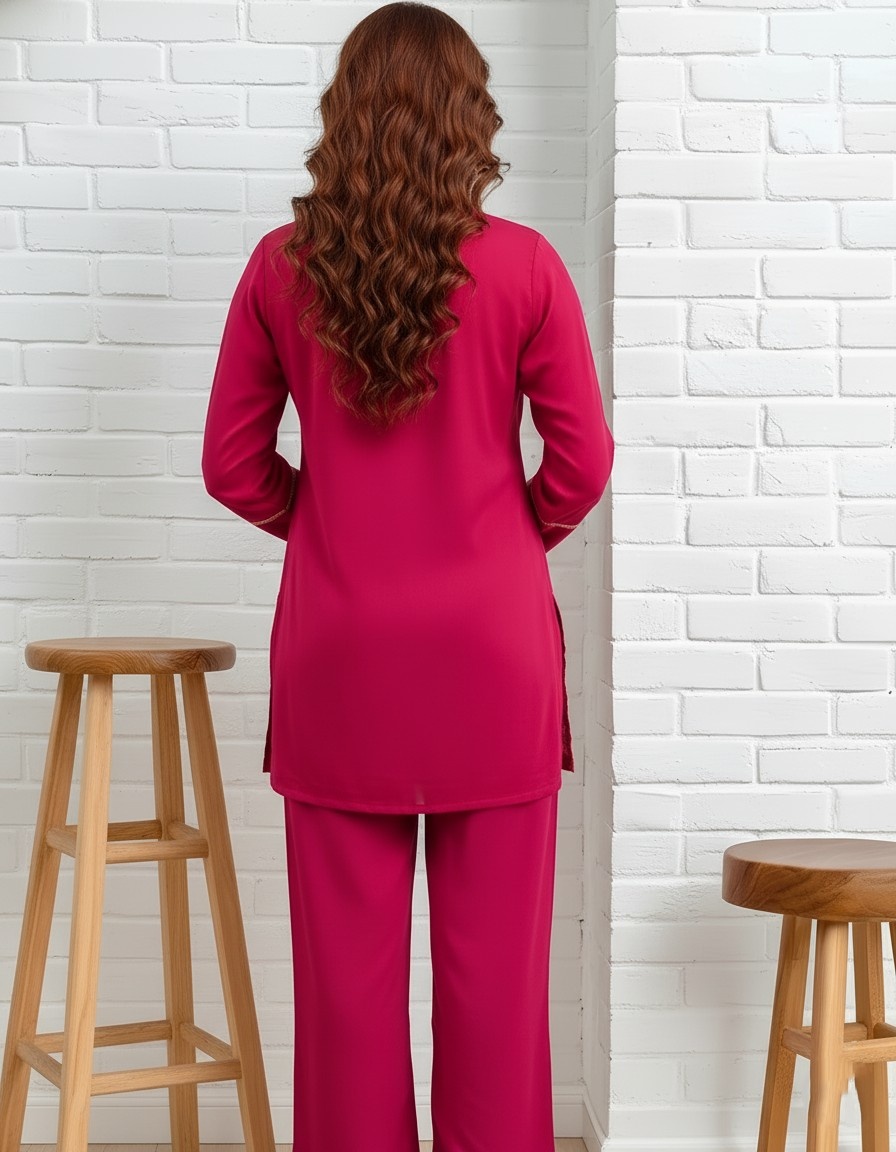Pink Embroidered Kurta Pant Set
