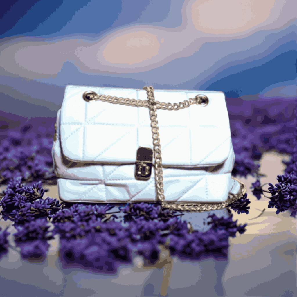 Photographed on a dreamy lavender field background for a romantic, ethereal vibe