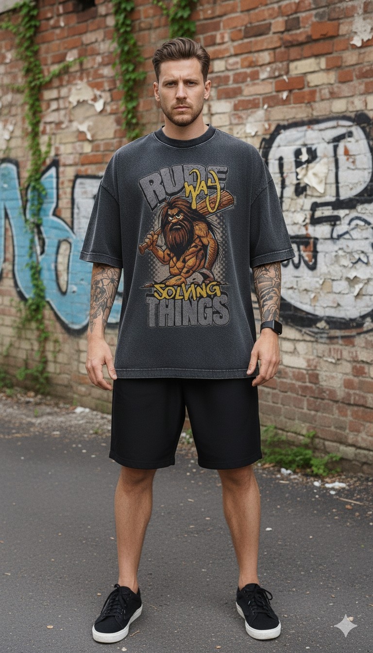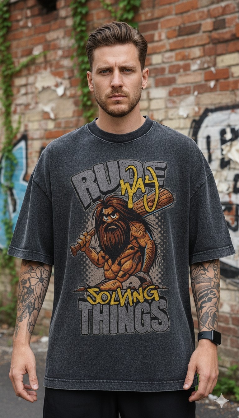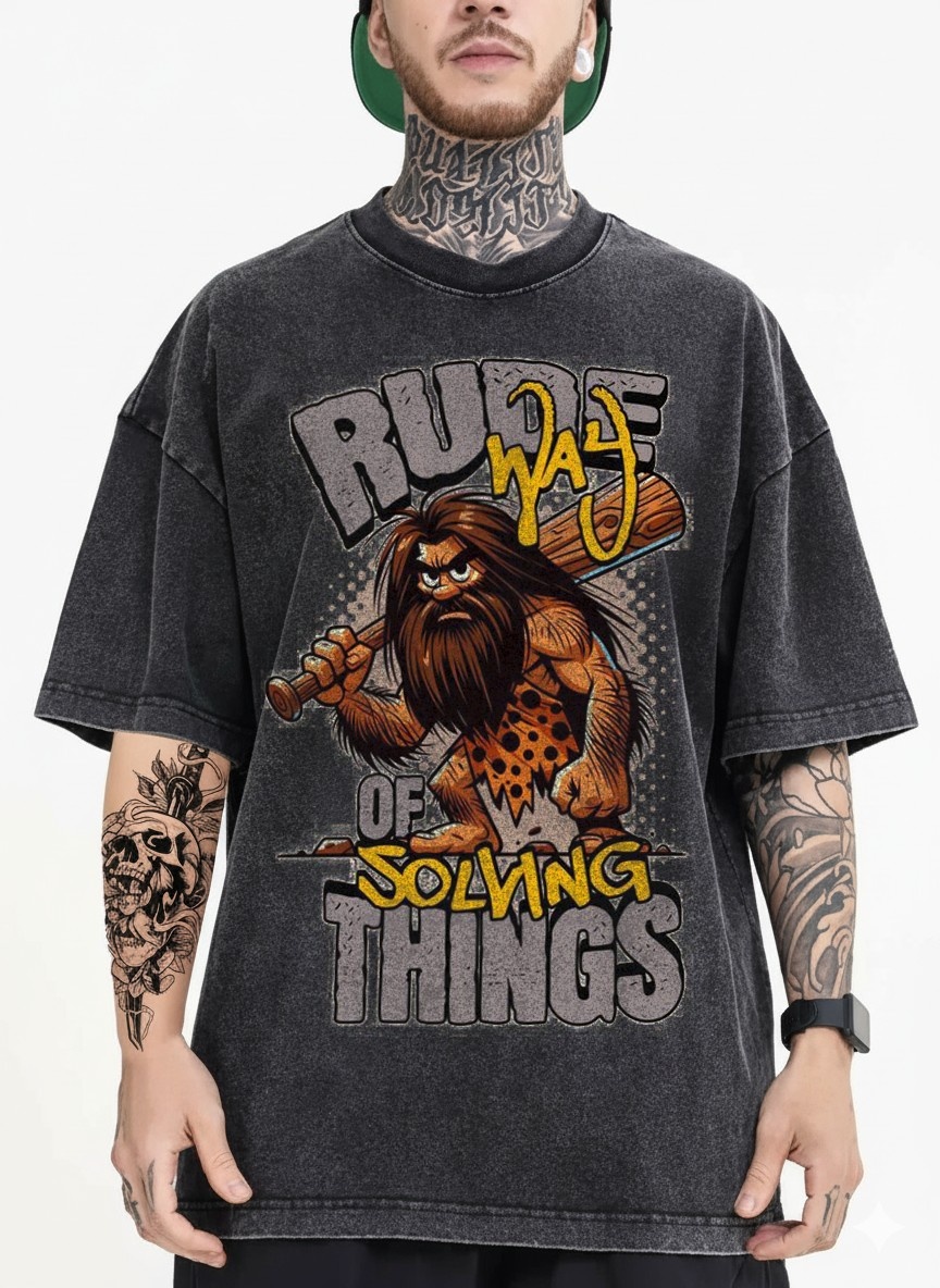 Rude Way of Solving Things Acid Wash 240 GSM T-Shirt