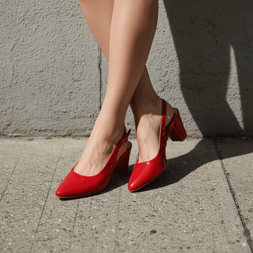 - Color: Striking cherry red with a glossy patent finish