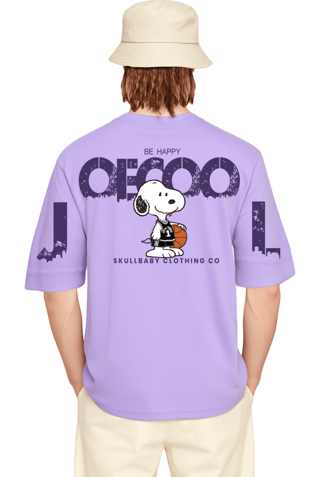 Style: Urban streetwear with a retro cartoon vibe.
