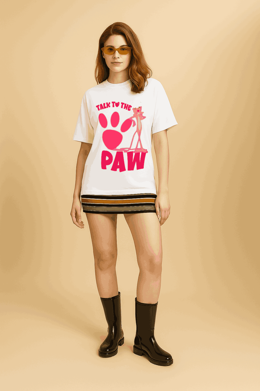 Eye-catching “Talk to the Paw” graphic featuring the iconic Pink Panther