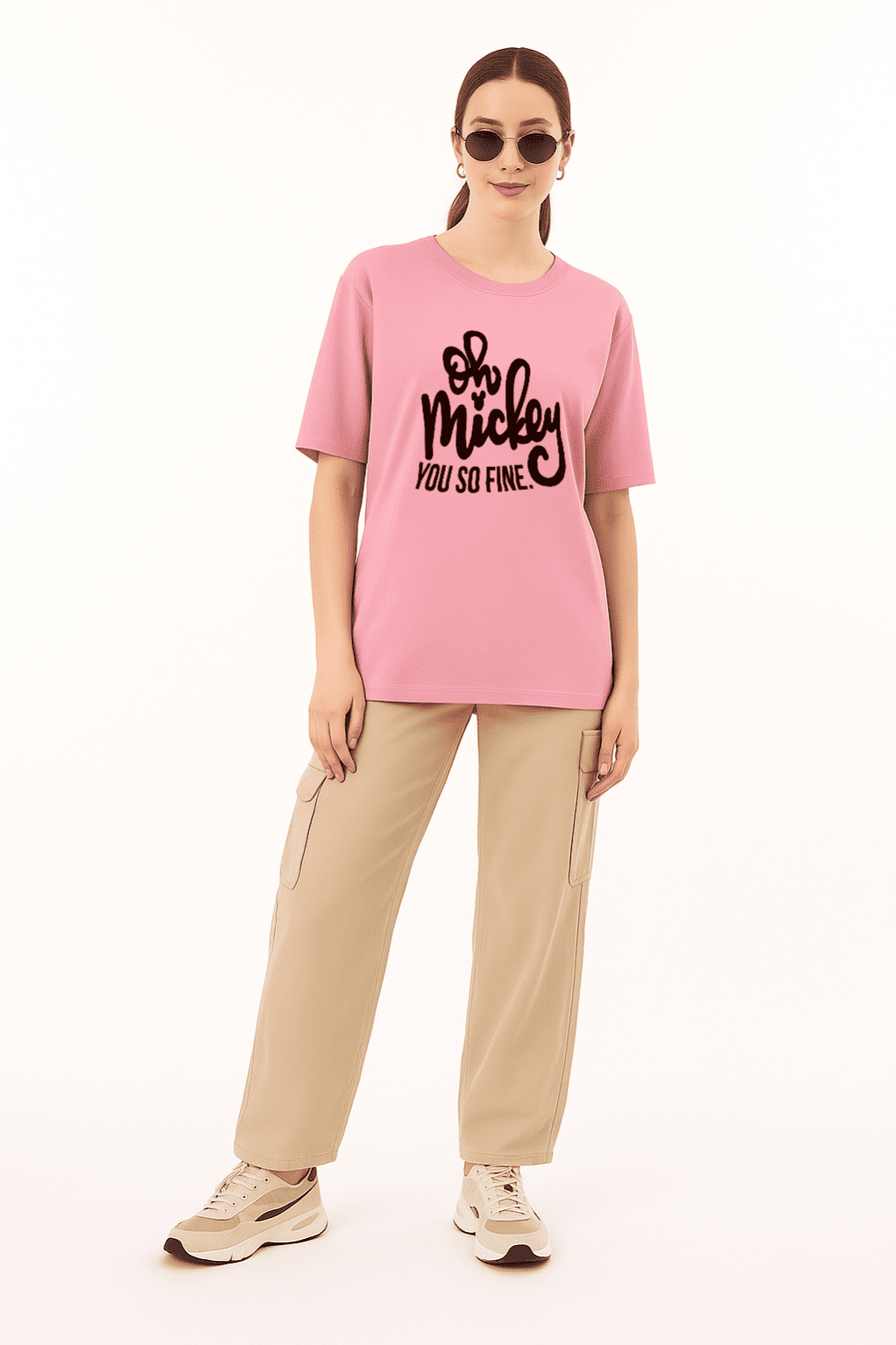Cartoon Graffiti Mouse Oversized T-Shirt – Pink