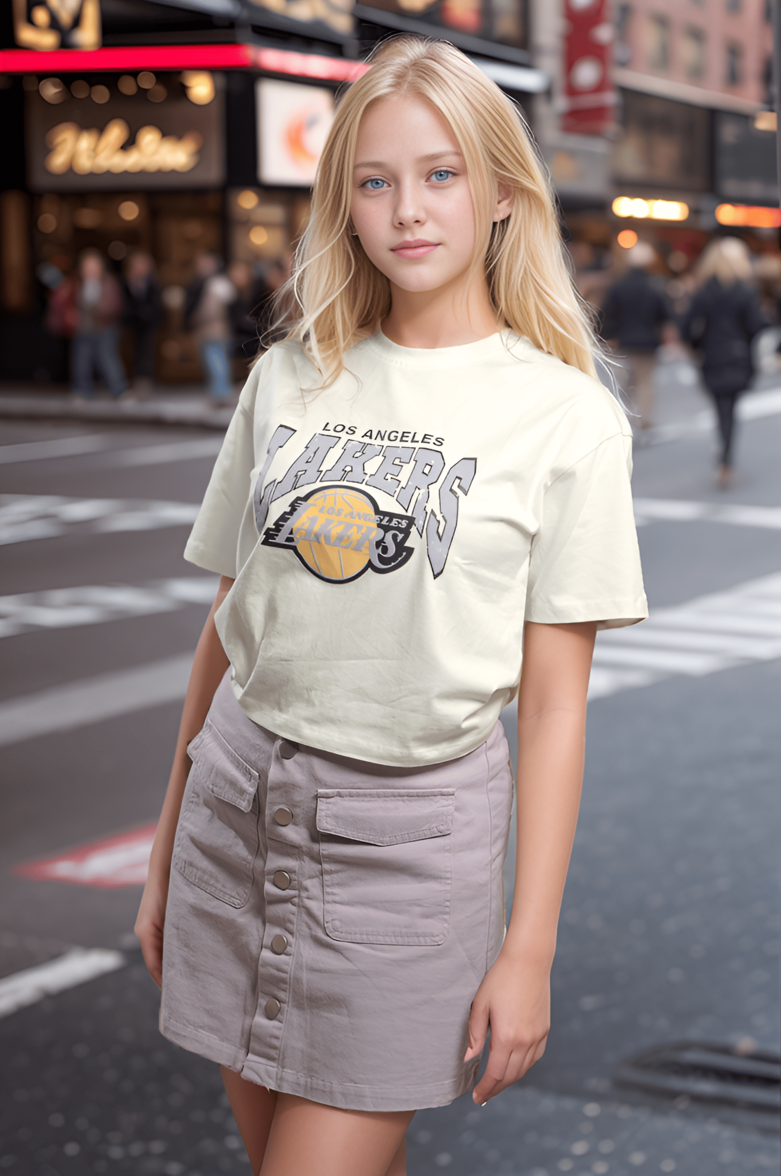 - Color: Off-white with bold Lakers logo in gray, black, and yellow