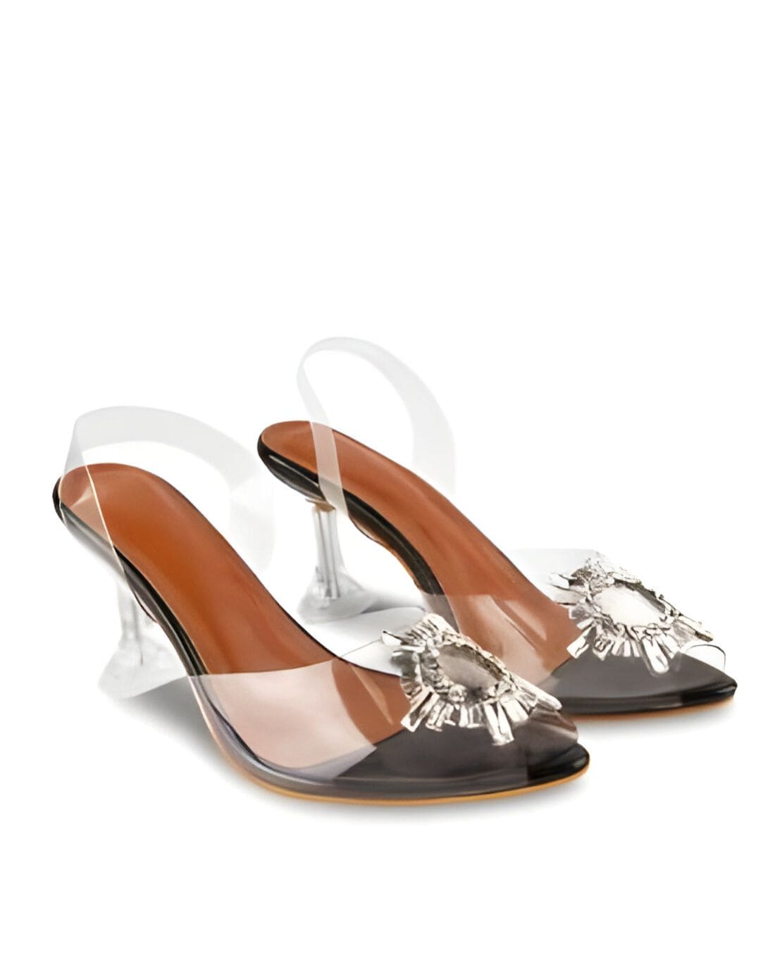 - Heel: Sculpted clear lucite heel, offering both style and comfort