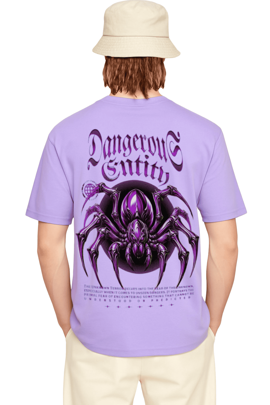Back Print: Striking 3D-style purple spider with gothic undertones