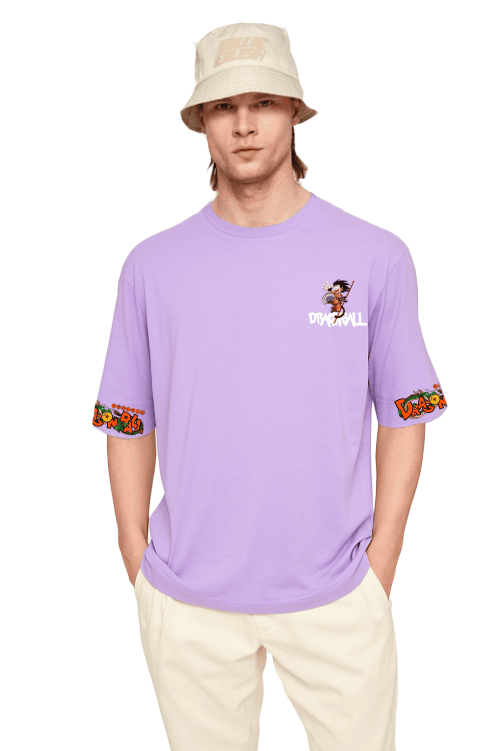 Authentic "Dragon Ball" logo graphics on both sleeve cuffs in bright, comic-style print.