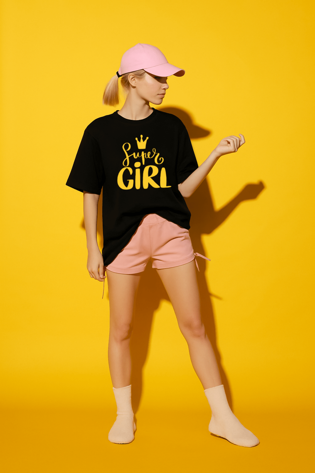Model Styling: Shown with pink cap and shorts (for display purposes only; accessories not included)