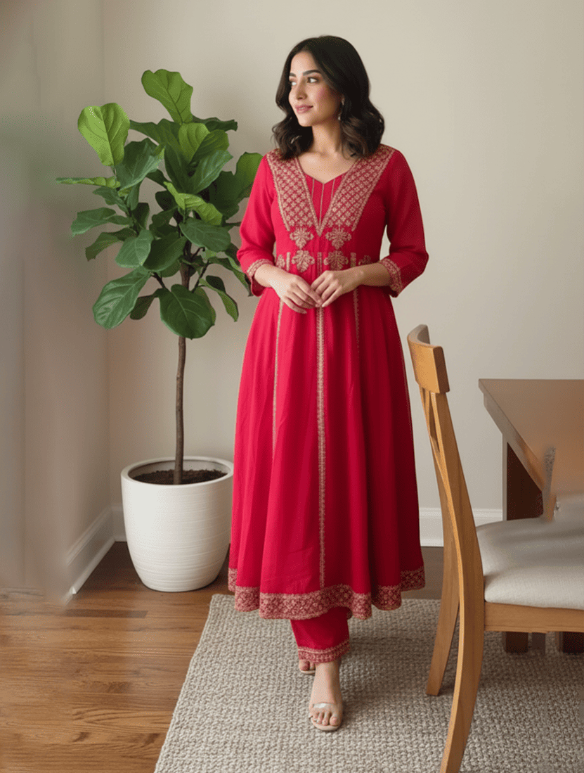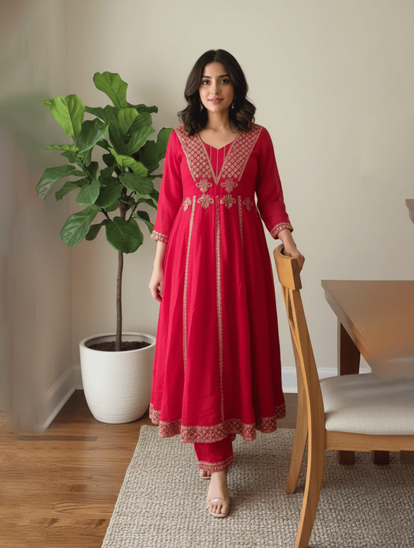 Graceful Red Anarkali Ensemble