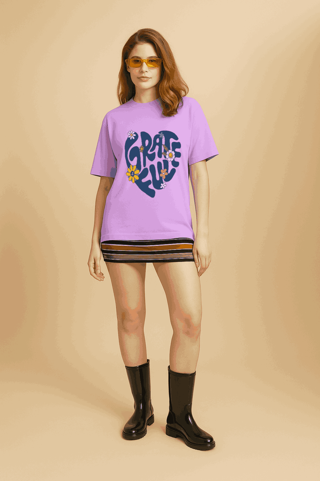 Unique heart-shaped "GRATEFUL" text graphic with playful floral accents