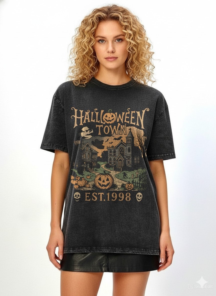 Halloween Town Est. 1998 Oversized Acid Wash T-Shirt - 240 GSM Premium Cotton