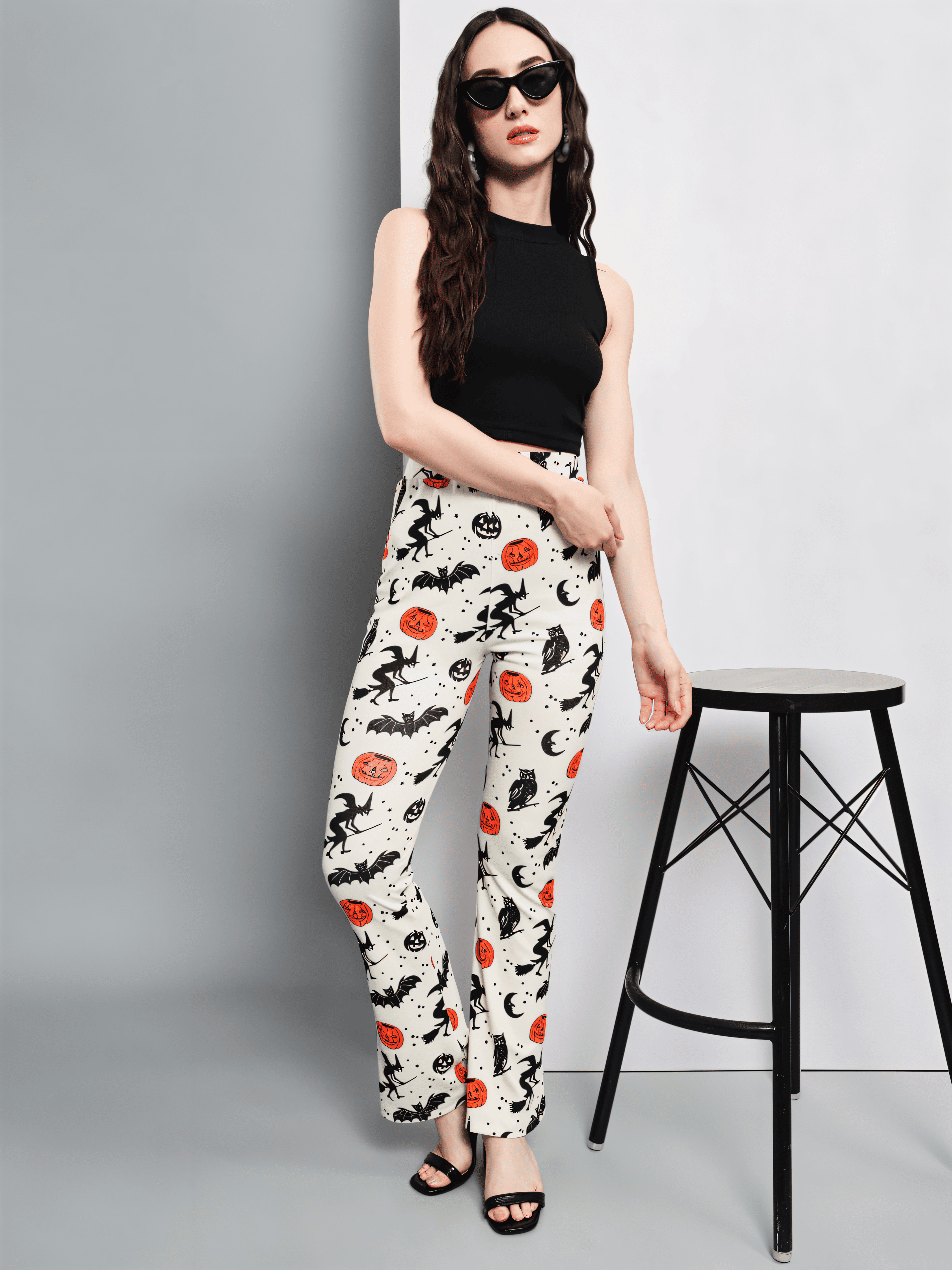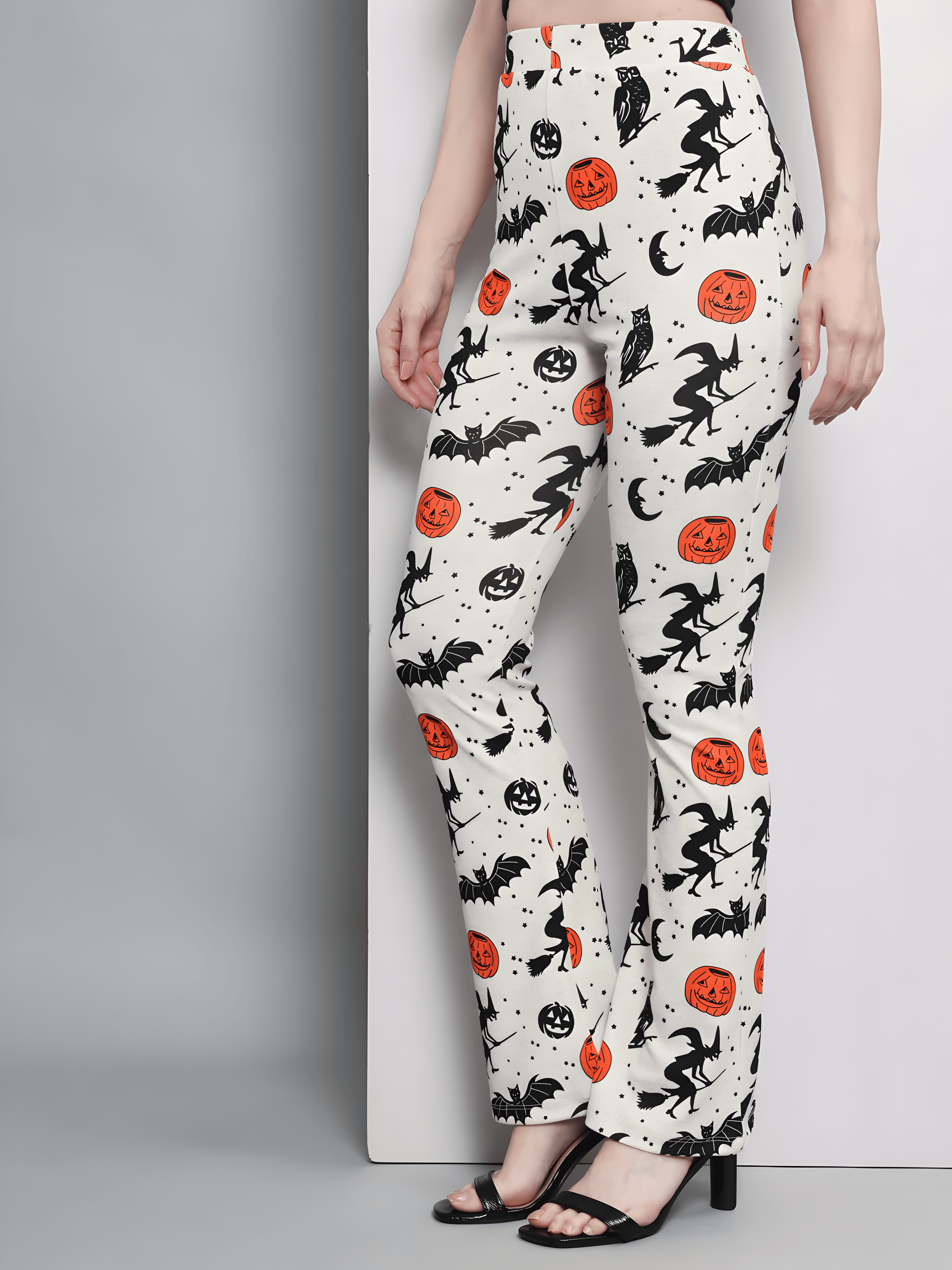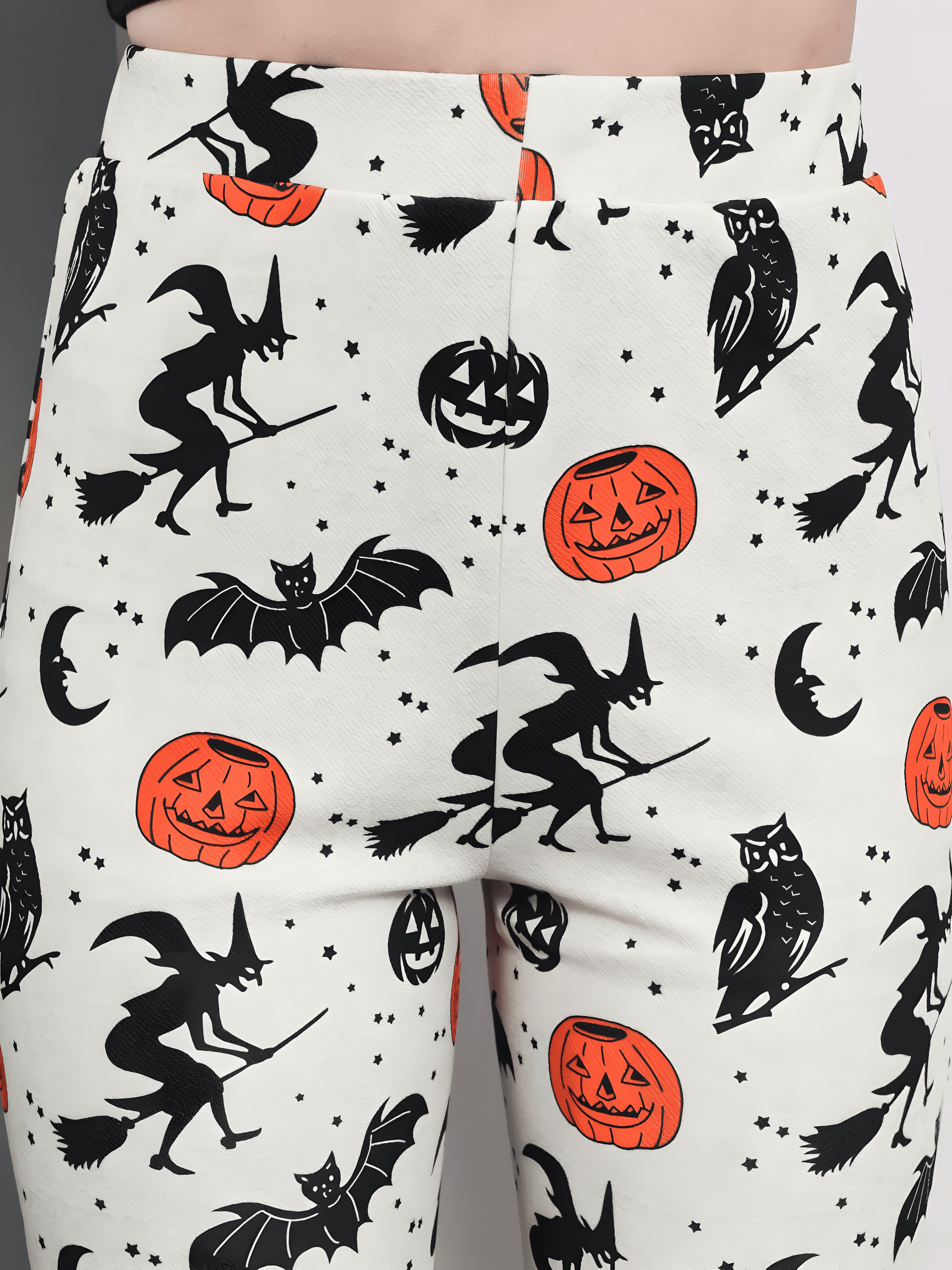- Cream/Off-White Base – Enhances the contrast of the black and orange Halloween prints.