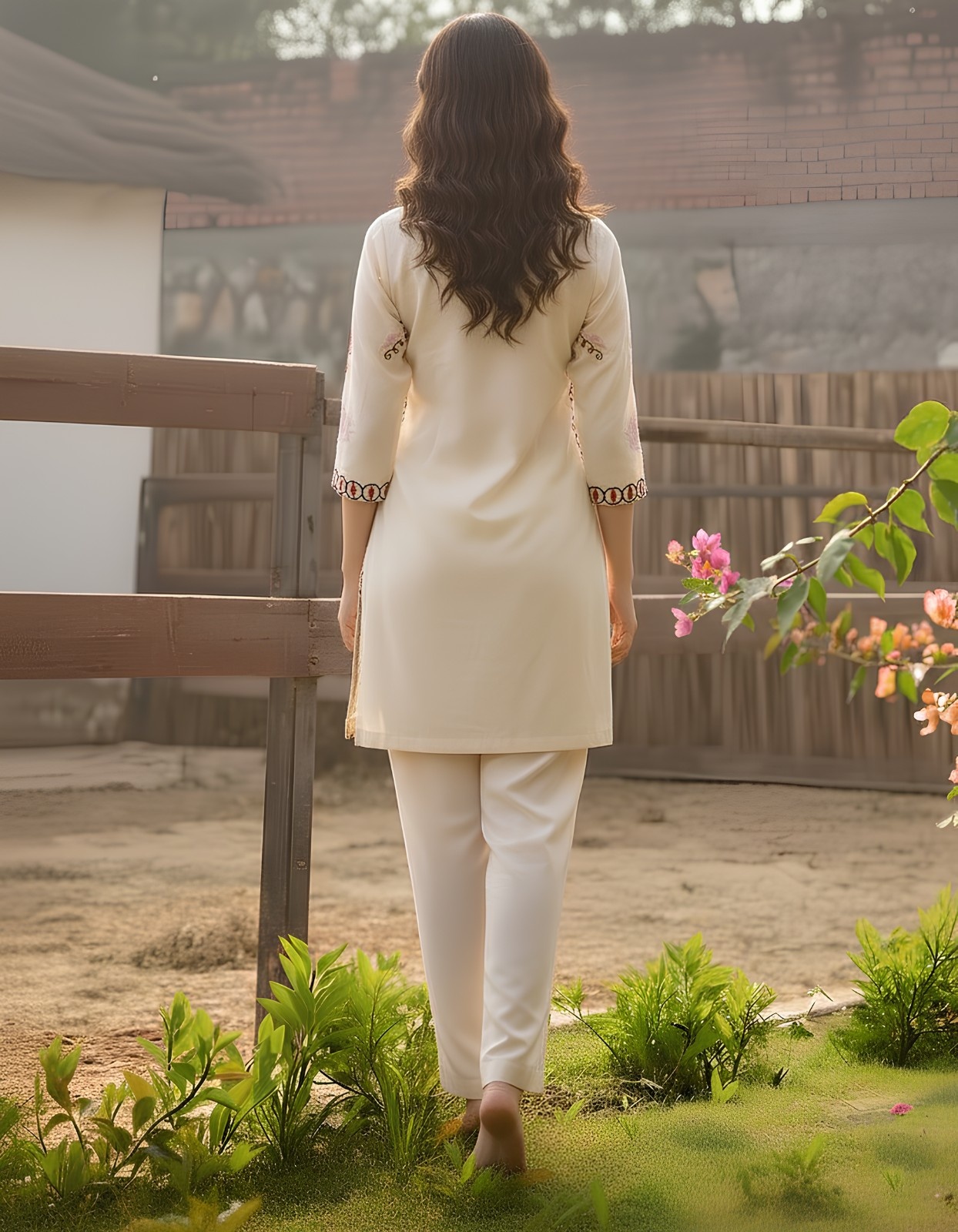 Delicate embroidery detailing on neckline, sleeves and hemline