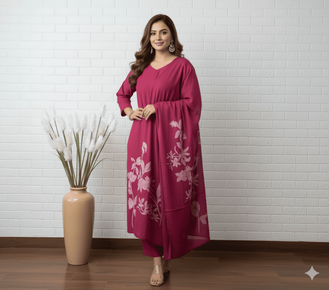 Magenta Floral Embroidered Kurta Set with Dupatta