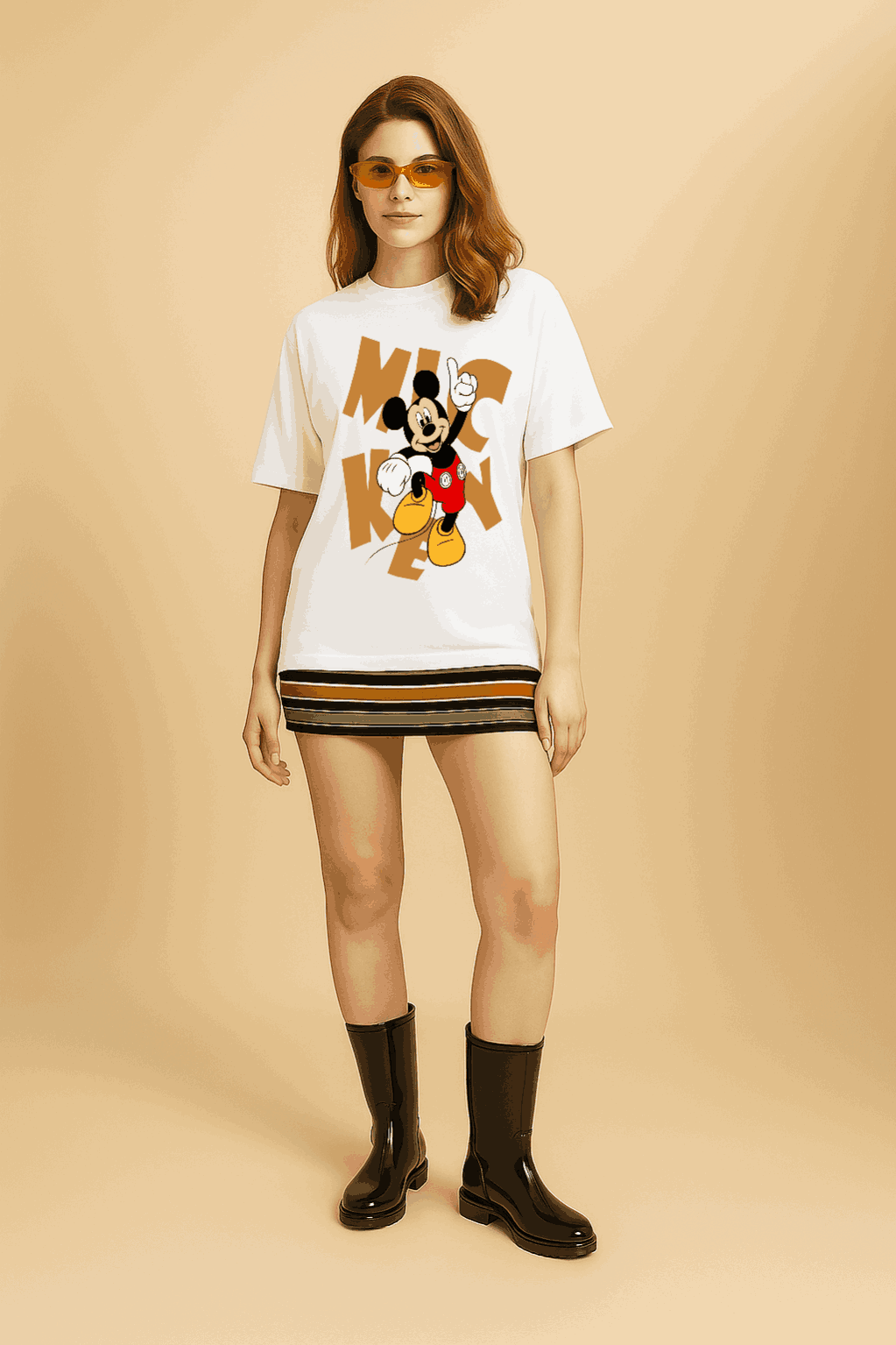 Features a bold and playful Mickey Mouse print with dynamic letter layout