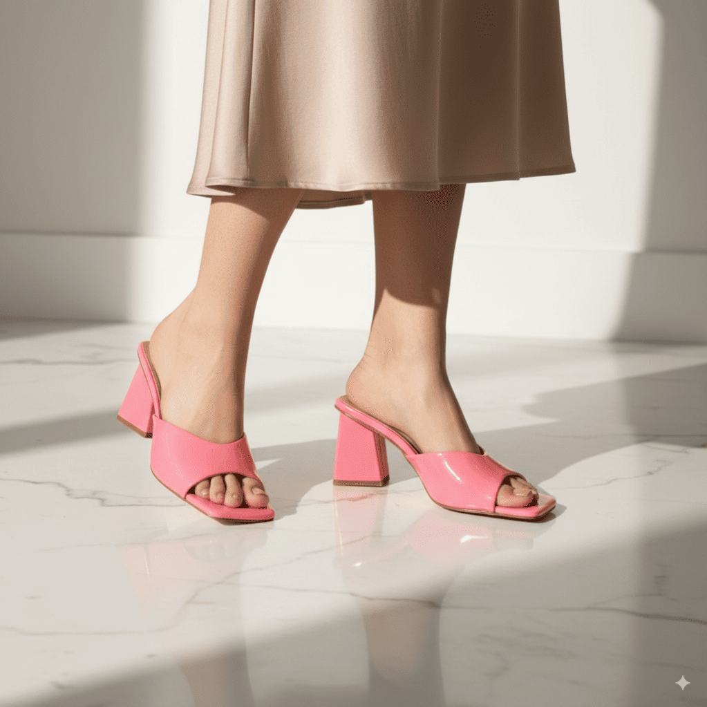 - Heel: Stylish geometric block heel for stability and elegance