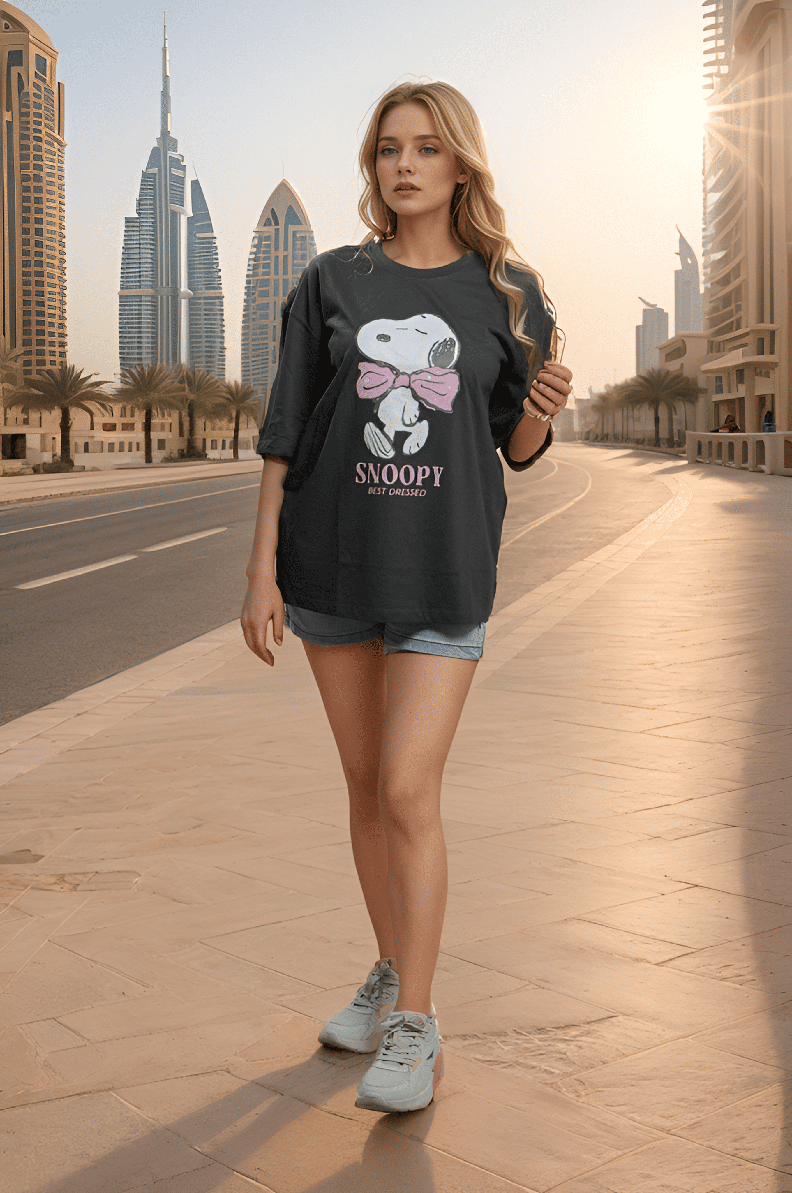 - Design: Features a playful Snoopy graphic wearing a pink bow, with the text "Snoopy Best Dressed" in a stylish pastel pink font