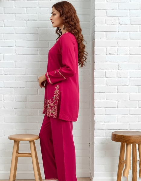 Pink Embroidered Kurta Pant Set