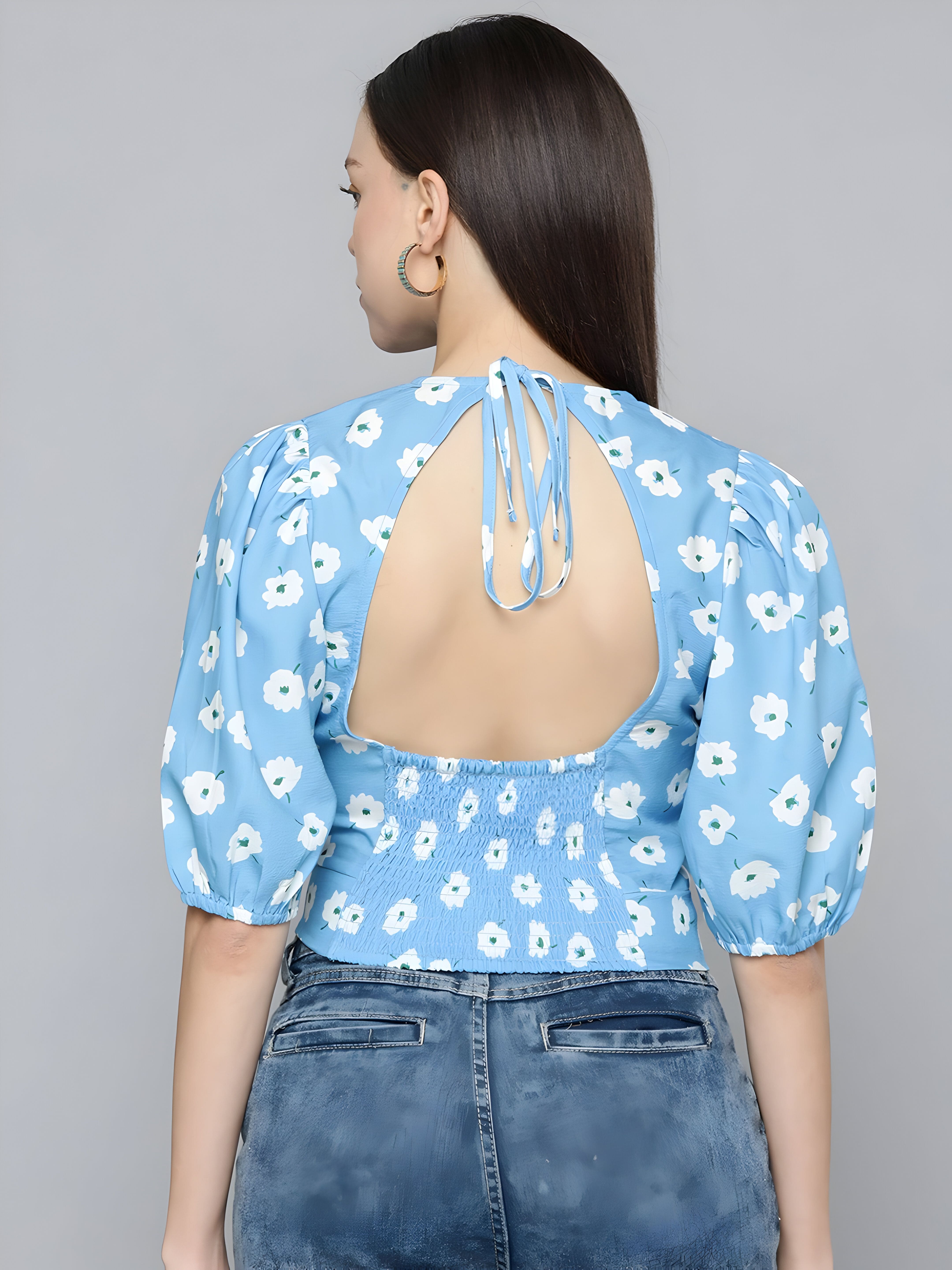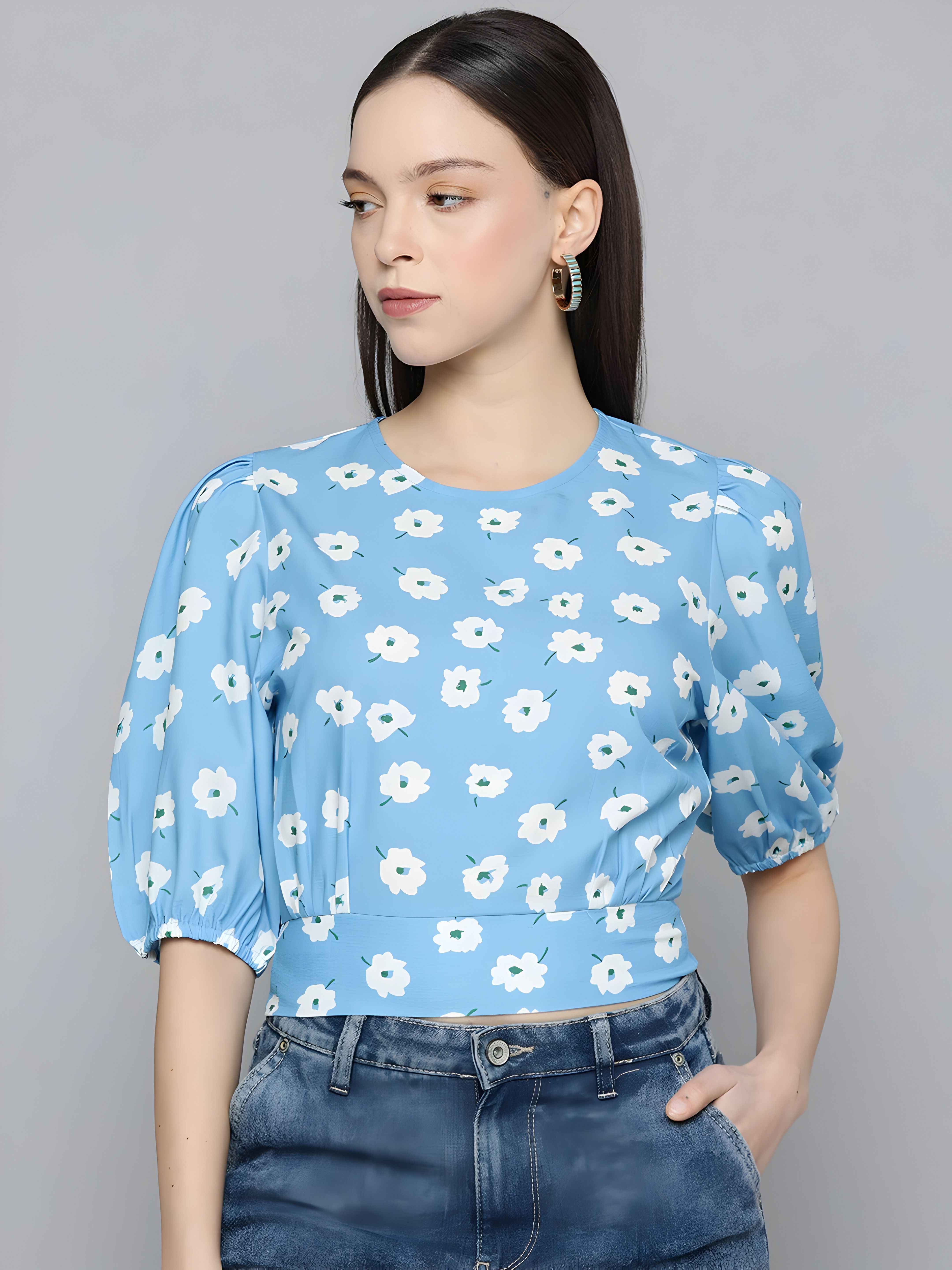 Puff-Sleeve Floral Blouse