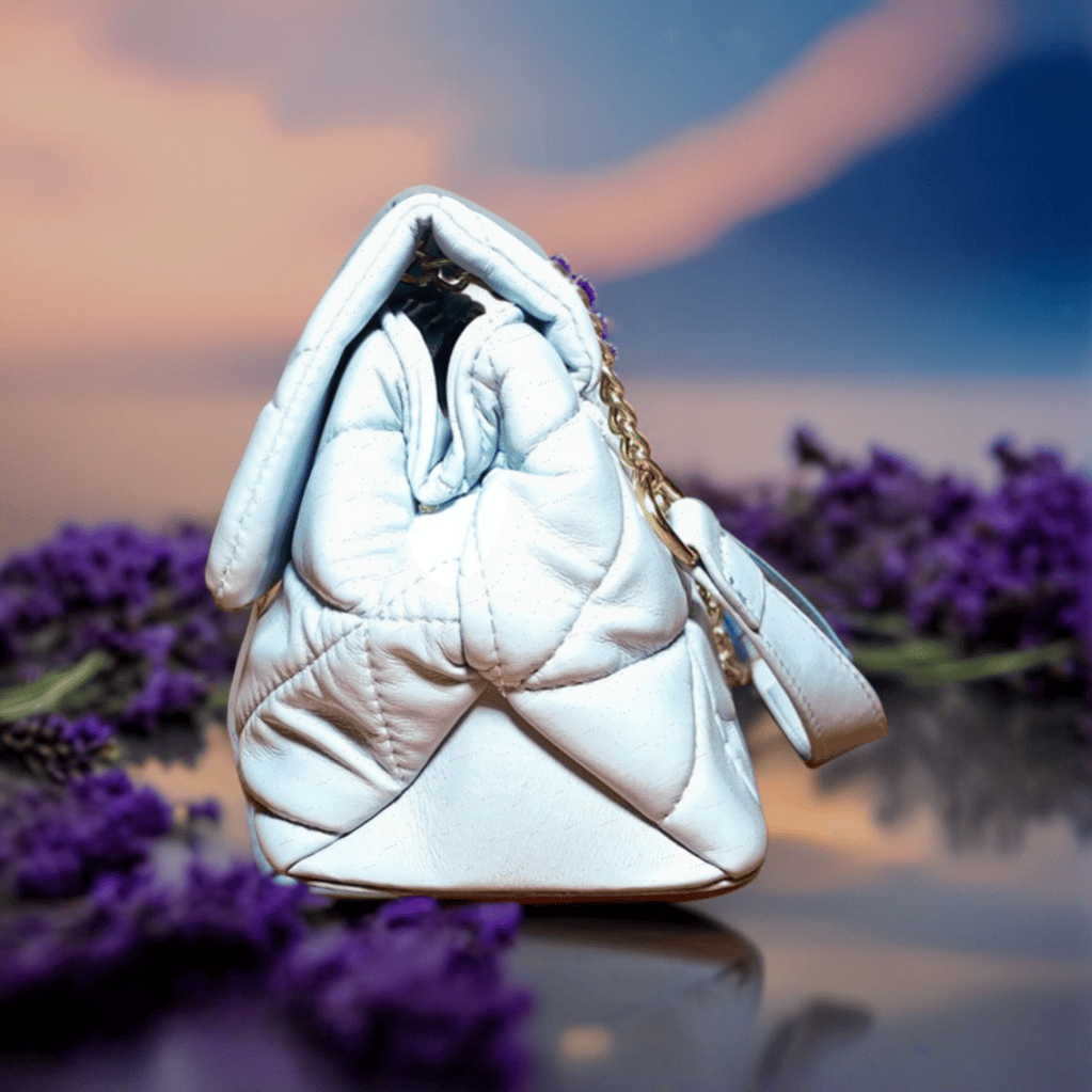 Photographed on a dreamy lavender field background for a romantic, ethereal vibe