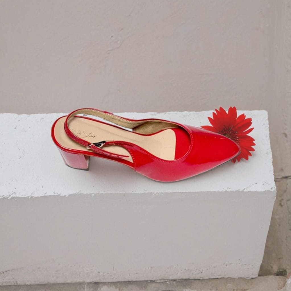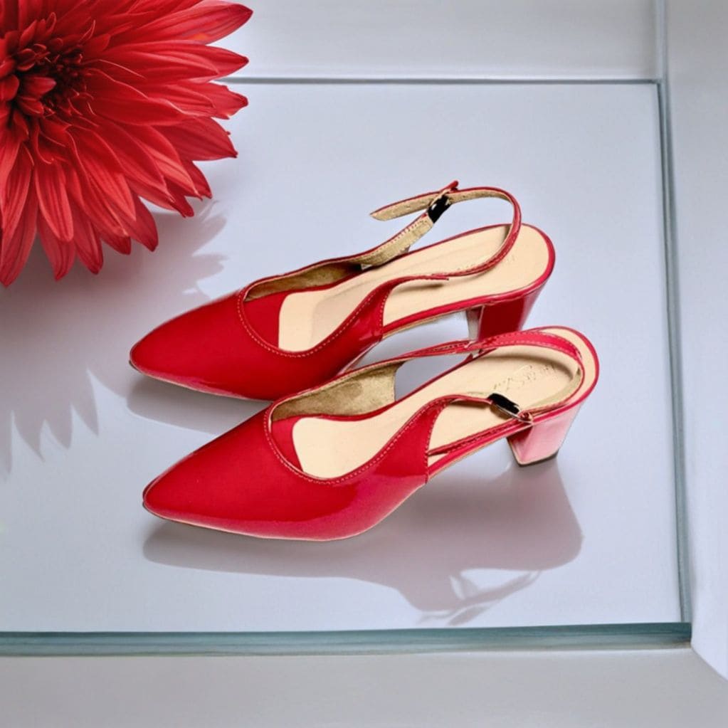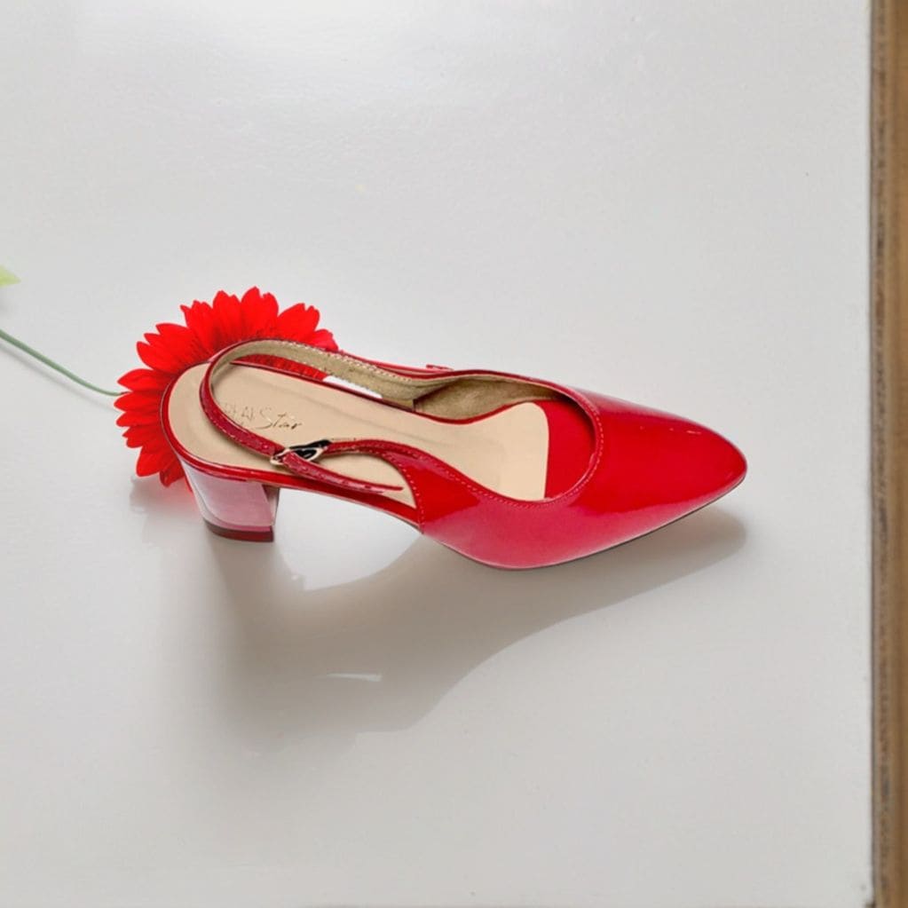 - Color: Striking cherry red with a glossy patent finish