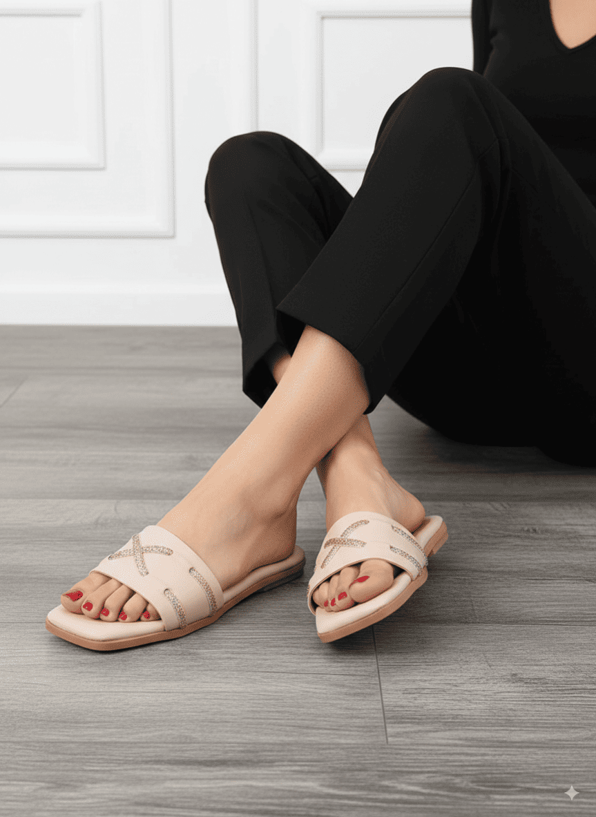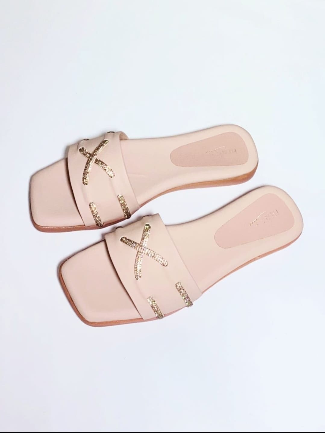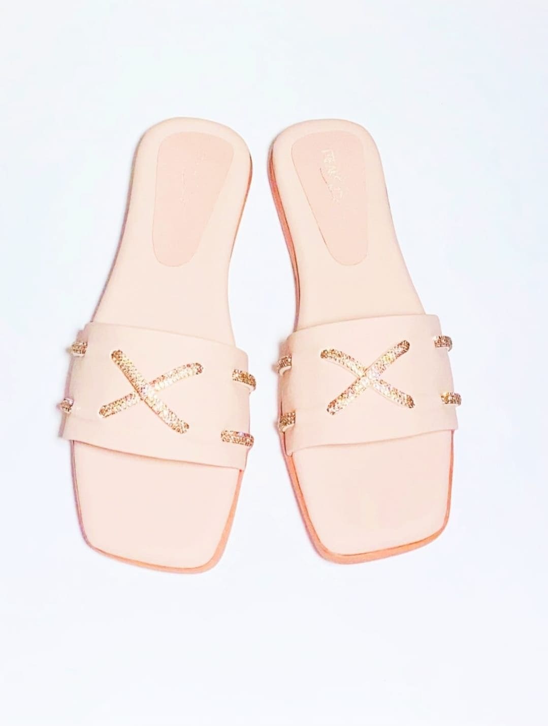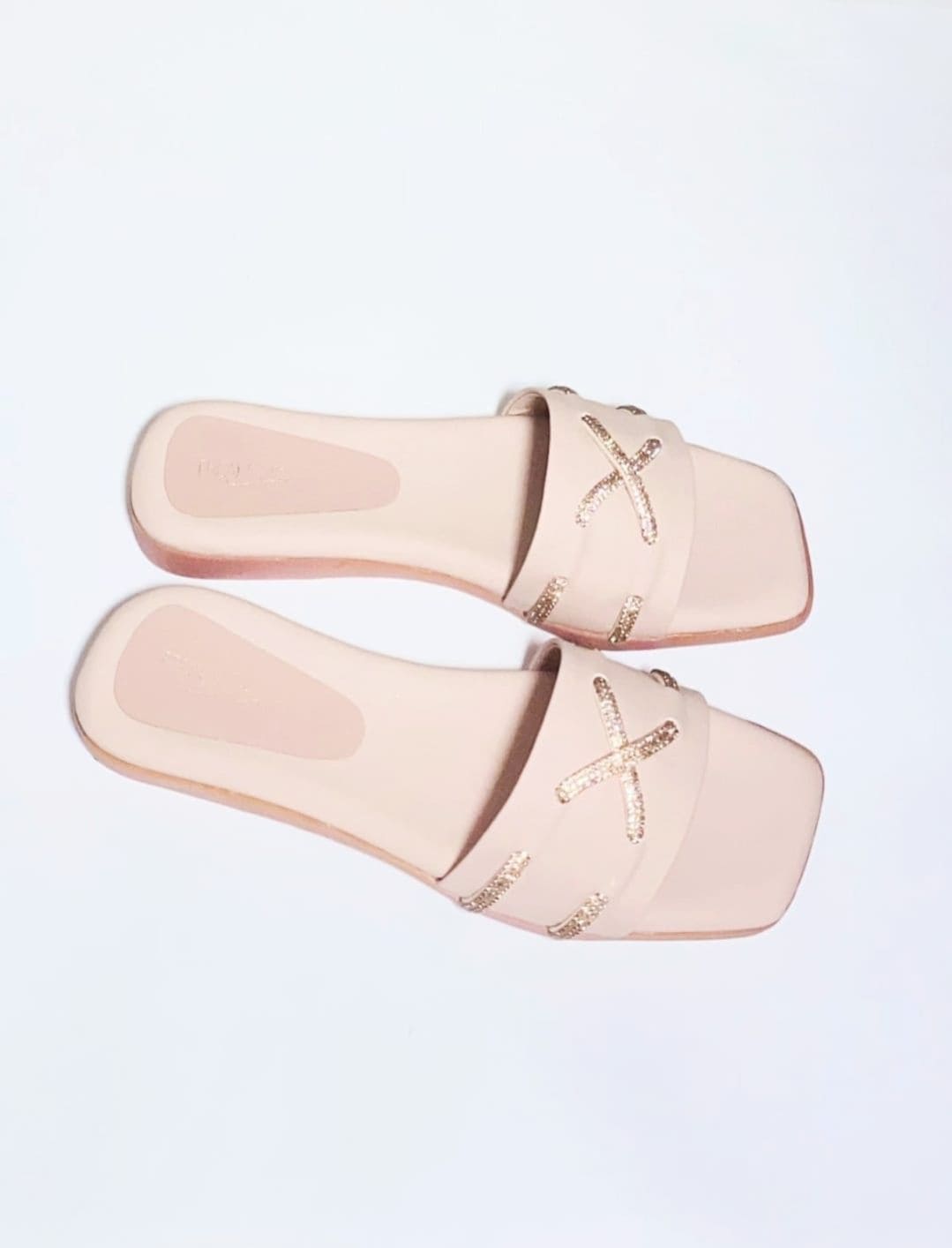 - Elegant nude-colored flat sandals for a timeless and versatile look