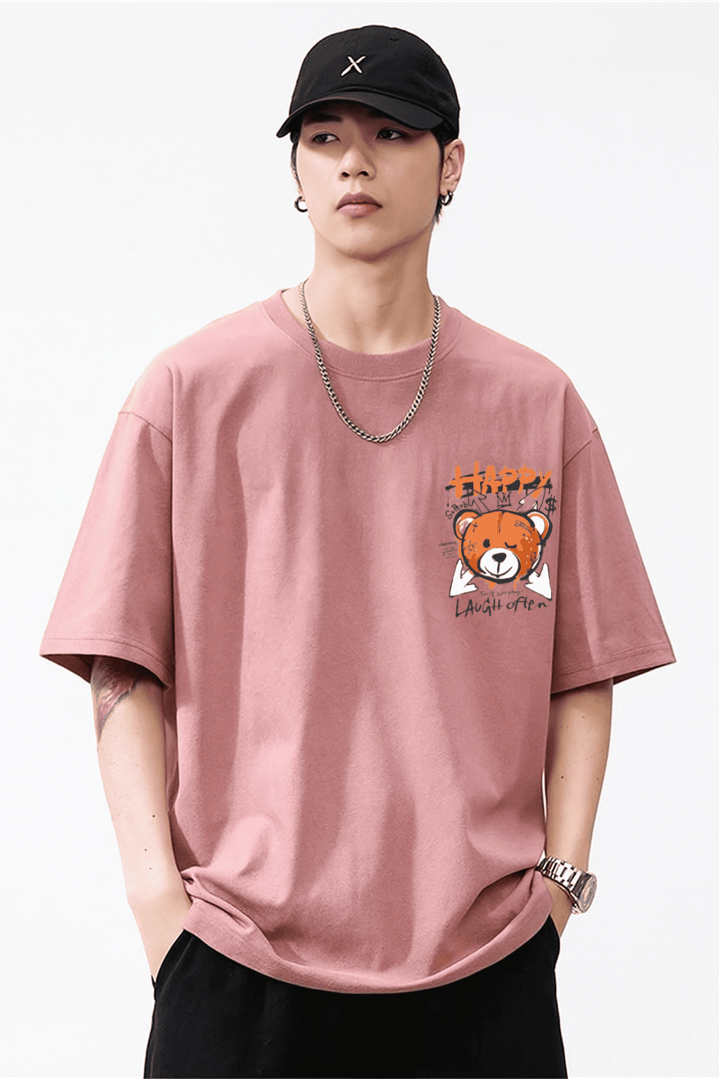 Streetwear Teddy Bear Graphic T-Shirt – Happy Vibes Edition
