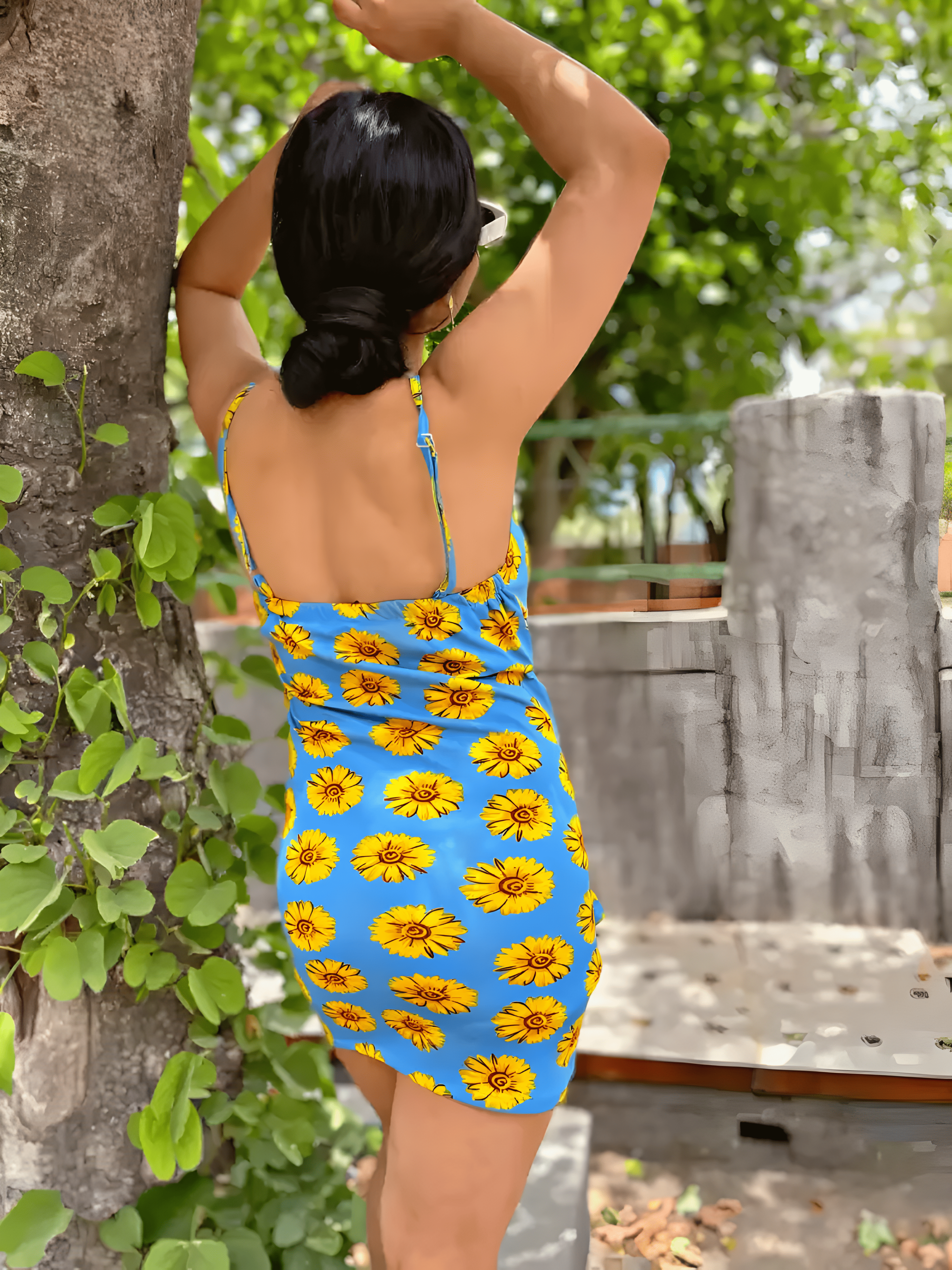 - Design: Eye-catching blue base with bright yellow sunflower prints.