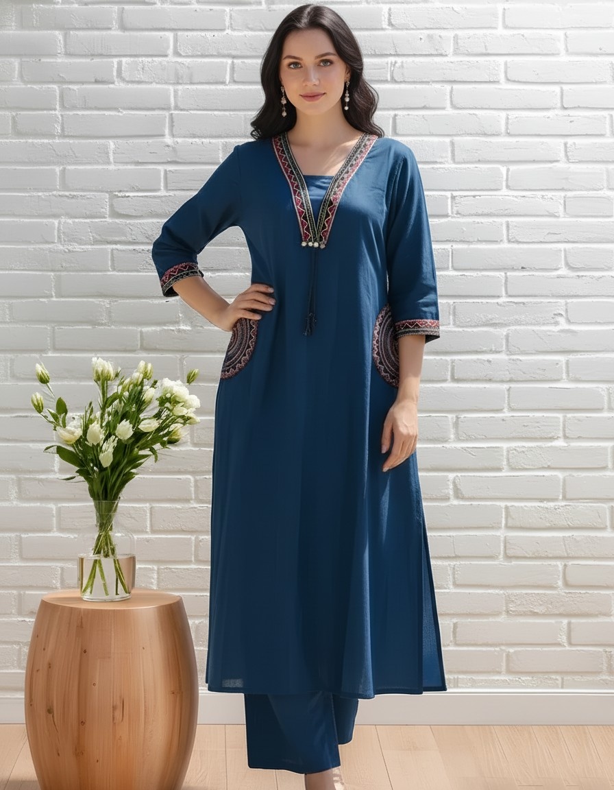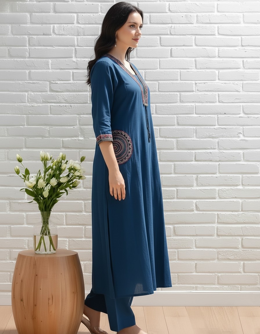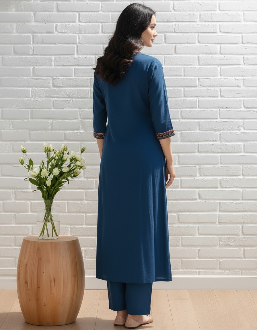 Straight-cut kurta silhouette that offers a flattering and sophisticated fit.