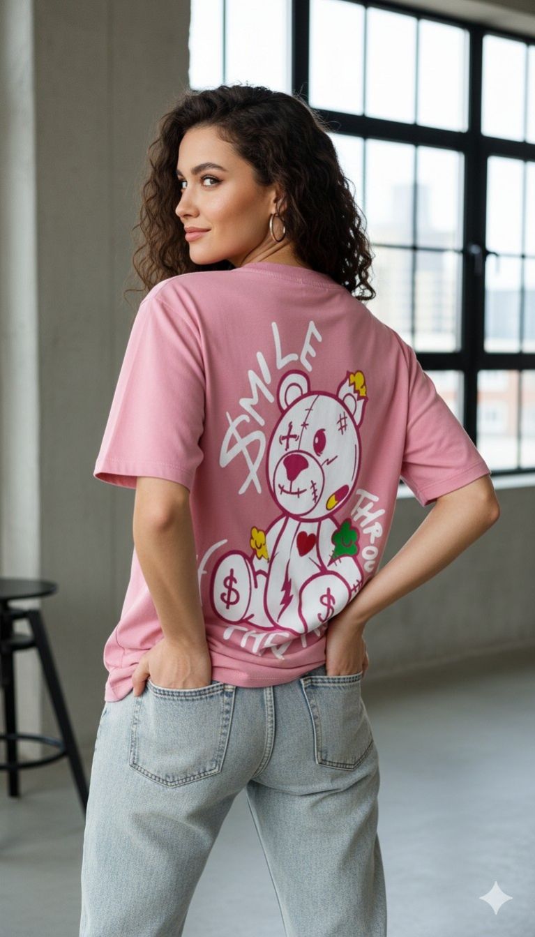 Teddy Graphic Oversized T-Shirt – Pink