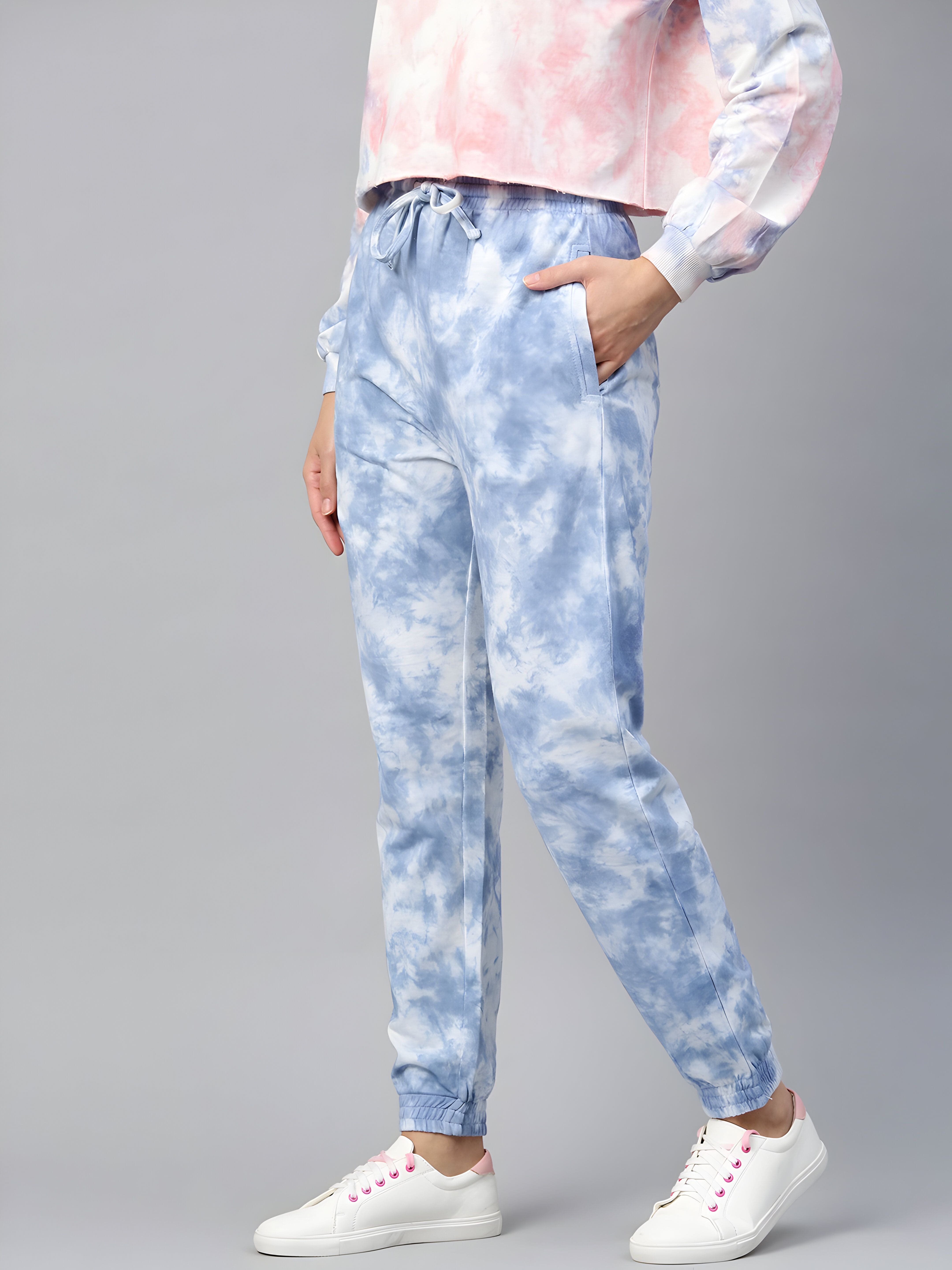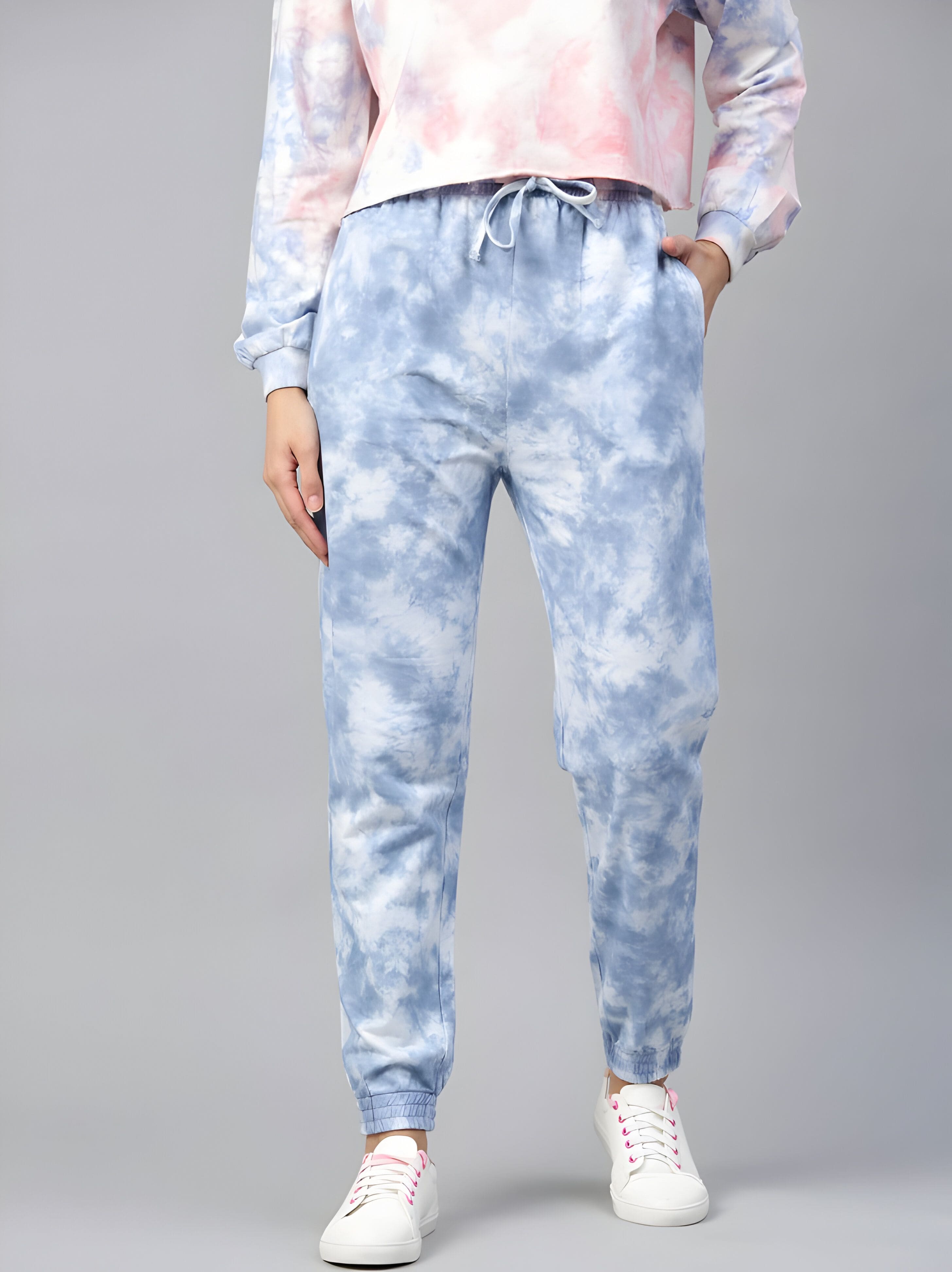 - Tie-Dye Joggers – Stylish blue and white tie-dye pattern for a trendy look.