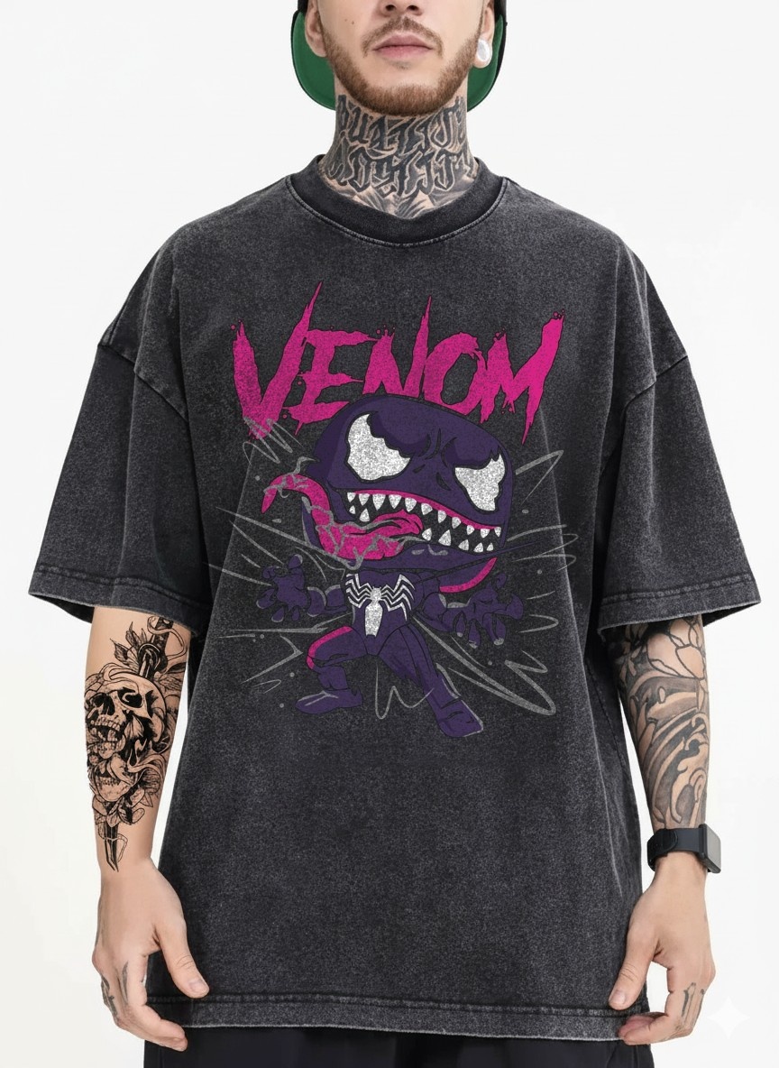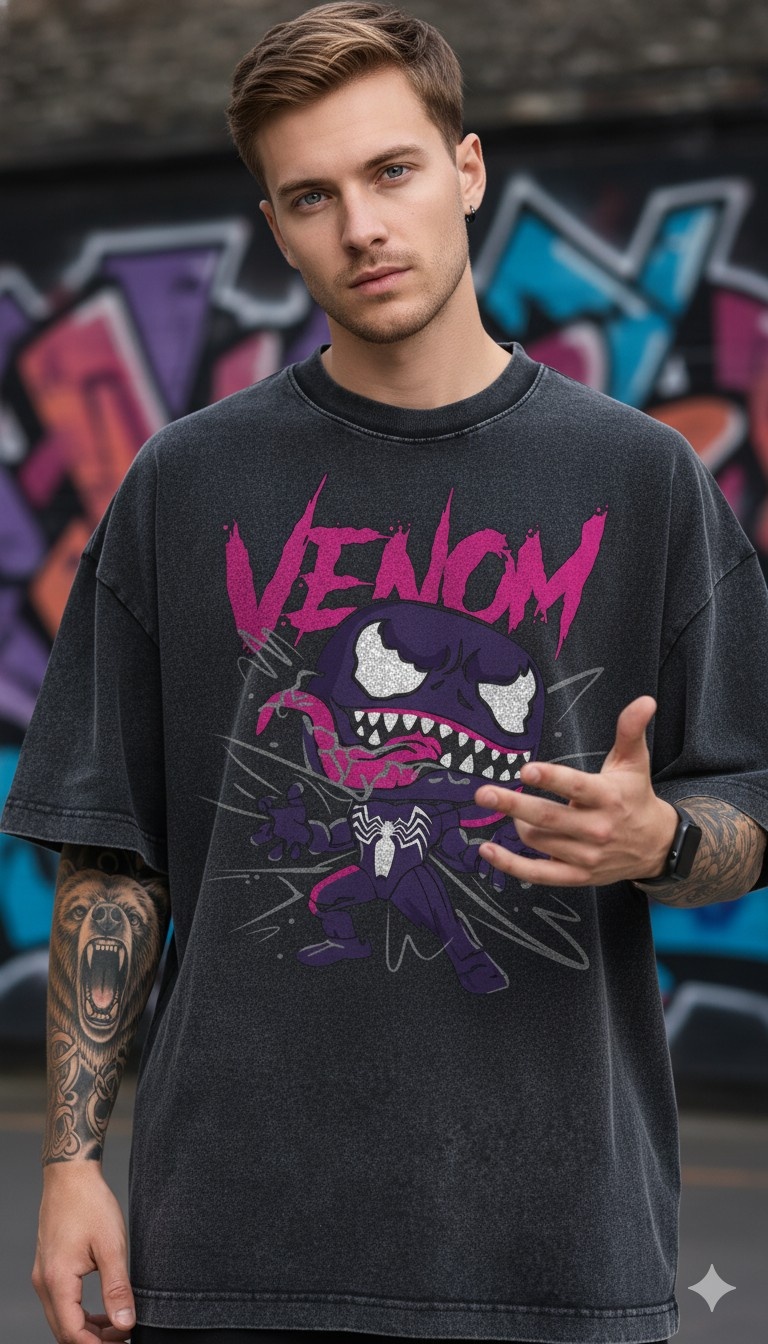 - Features a bold "Venom" graphic with a dynamic depiction of the iconic character in purple and pink tones.