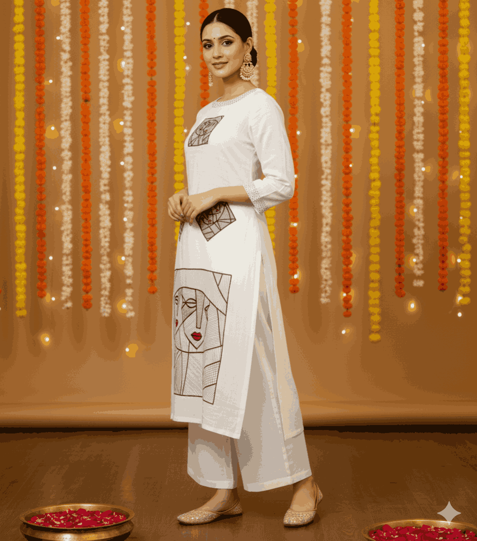 Expertly crafted with comfortable cotton flex fabric, this kurta and palazzo set is perfect for any occasion. The intricate embroidery adds a touch of elegance to the round neck design. Made with quality fabric, this set offers both style and comfort.
