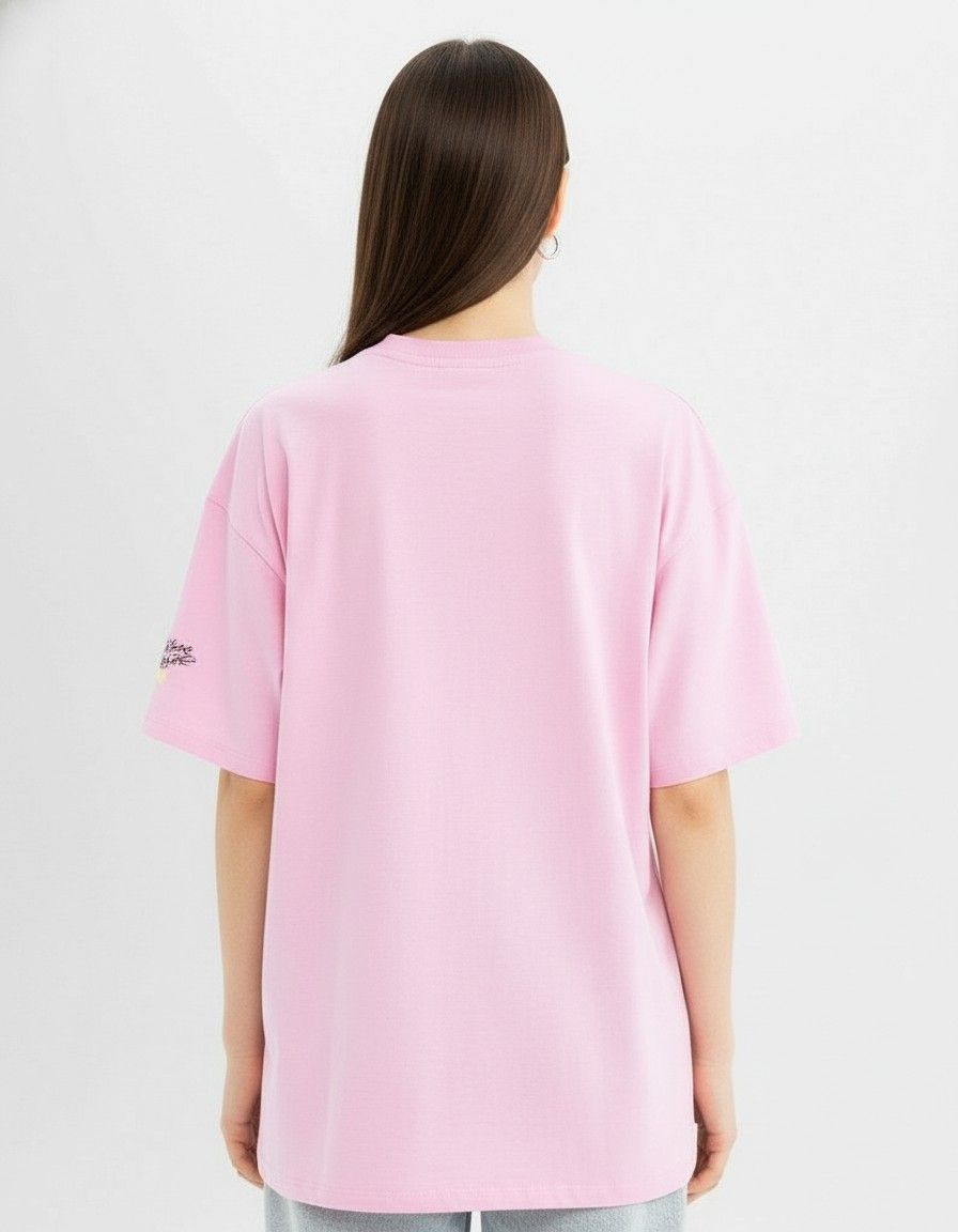 Women’s Oversized Pink Cartoon Graphic T-Shirt – Cute Sponge & Starfish Print Casual Tee
